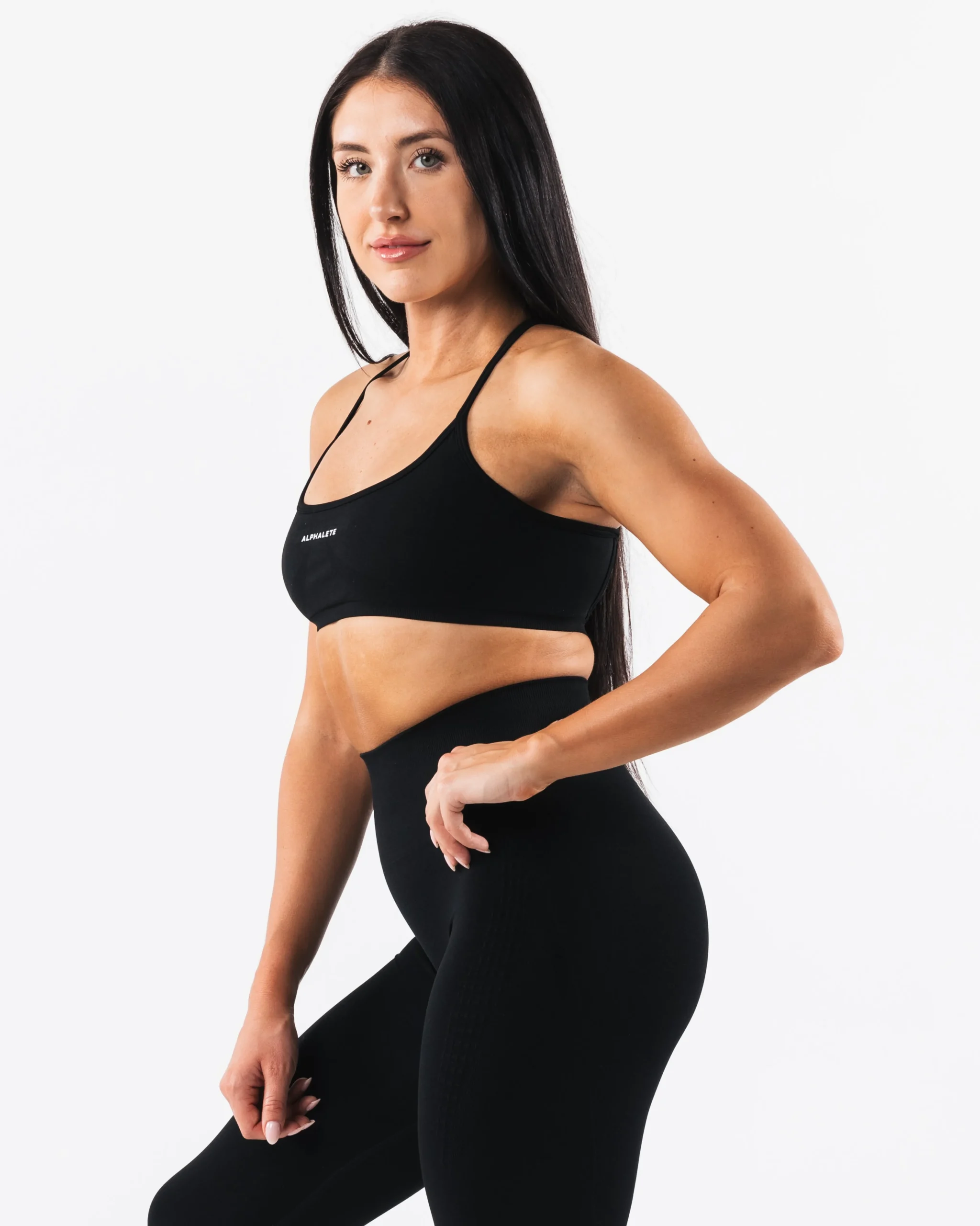 |HIGHLIGHTS|Seamless construction|Rib bra band for support|Low to Medium impact|Moisture-wicking breathable fabric|Flattering scoop neckline|A/B cup size|FIT SUGGESTION|This itemruns true to Alphalete’s standard seamless fit.|We recommend sizing up for a comfortable fit.|Brookeis 5’5”/165cm, wearing a size S with a 35”/88.9cm bust.|Hannah is 5’11/180.3cm, wearing a size L with a 42.5″/108cm bust.|MATERIALS AND WASHING DIRECTIONS|51% Polyamide, 38% Polyester, 11% Elastane|We recommend washing inside-out on a cold setting|Hang to dry|DESCRIPTION|With the beloved fit and fabric, the new Amplify Back Cross Bra takes it up a notch. The rib bra band offers support while maintaining a clean seamless finish. Our exclusive seam work and ribbing allows the bra to move with you, while accentuating all of the right places. Our Amplify fabric creates an irresistibly silky, smooth hand-feel, while the full-interlocking knit offers the flexibility to move freely.