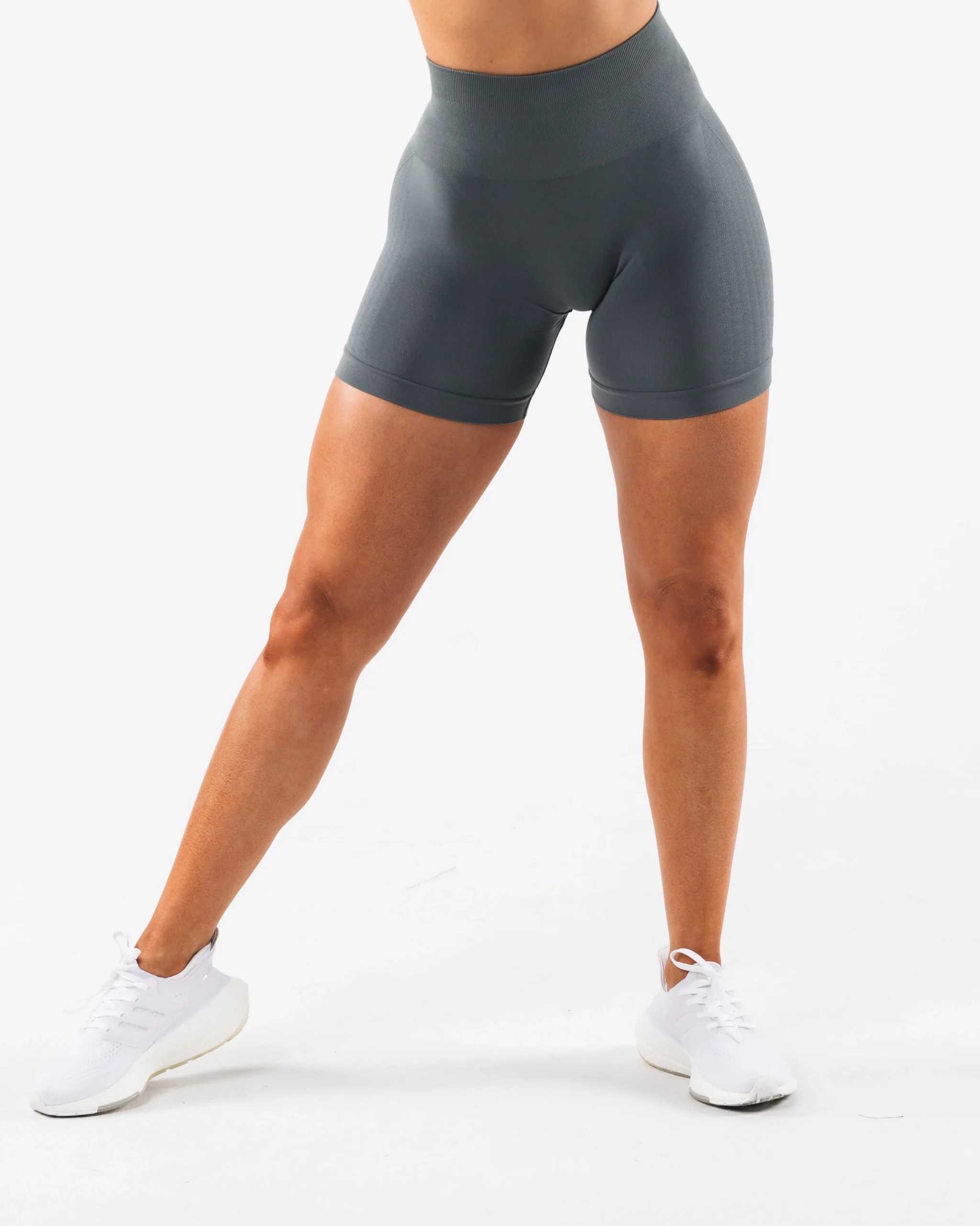 |HIGHLIGHTS|High-waistedshort|3-tiered tapered waistband|Seamless knit fabric|No front seam|Back scrunch seam detail to enhance curves|New leg and glute contouring panels|FIT SUGGESTION|This itemruns true to Alphalete’s standard seamless fit.|If you are between sizes, we recommend sizing up.|Model|is 5’4”/162.5cm, wearing a size XS with 39.5″/100cm hips and 26”/66cm waist.|MATERIALS AND WASHING DIRECTIONS|51% Polyamide, 38% Polyester, 11% Elastane|We recommend washing inside-out on a cold setting|Hang to dry|DESCRIPTION|With the beloved fit and fabric of the original Amplify, the new Amplify ContourShort takes it up a notch. Themesh panelling curves with the body to sculpt and enhance the glute. Our exclusive seam work and ribbing allows theleggingto move with you, while accentuating your curves in all of the right places. Our Amplify fabric creates an irresistibly silky, smooth hand-feel, while the full-interlocking knit offerscompression with breathability.
