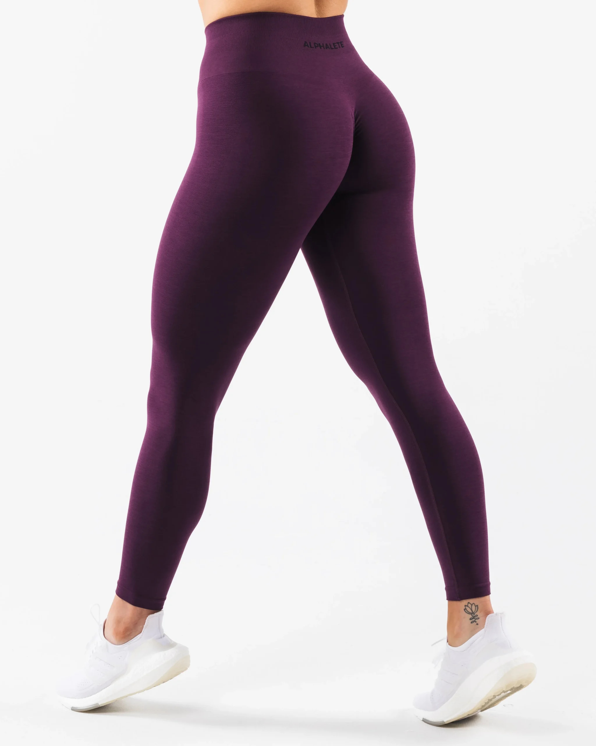 HIGHLIGHTS|Seamless knit|25″ inseam|High compression waistband|Stitched core wordmark logo|FIT SUGGESTION|This itemruns true to Alphalete’s standard seamless fit.|We recommend sizing up for a comfortable fit.|Amanda is 5’10”/177.8cm, wearing a size S with 40″/101.6cm hips and 28”/71.1cm waist.|MATERIALS AND WASHING DIRECTIONS|51% Polyamide, 38% Polyester, 11% Elastane|We recommend washing inside-out on a cold setting|Hang to dry|DESCRIPTION|A custom blend of yarn fibers creates an irresistibly silky, smooth hand-feel. Our full-interlock knit construction forms a more dense seamless fabric that maintains breathability. Increased elasticity provides unmatched compression, shape retention, and flexibility, made to move in sync with the body. The physique-enhancing rib paneling provides ideal support and durability. Amplify bottoms are designed to accentuate curves in all the right places.