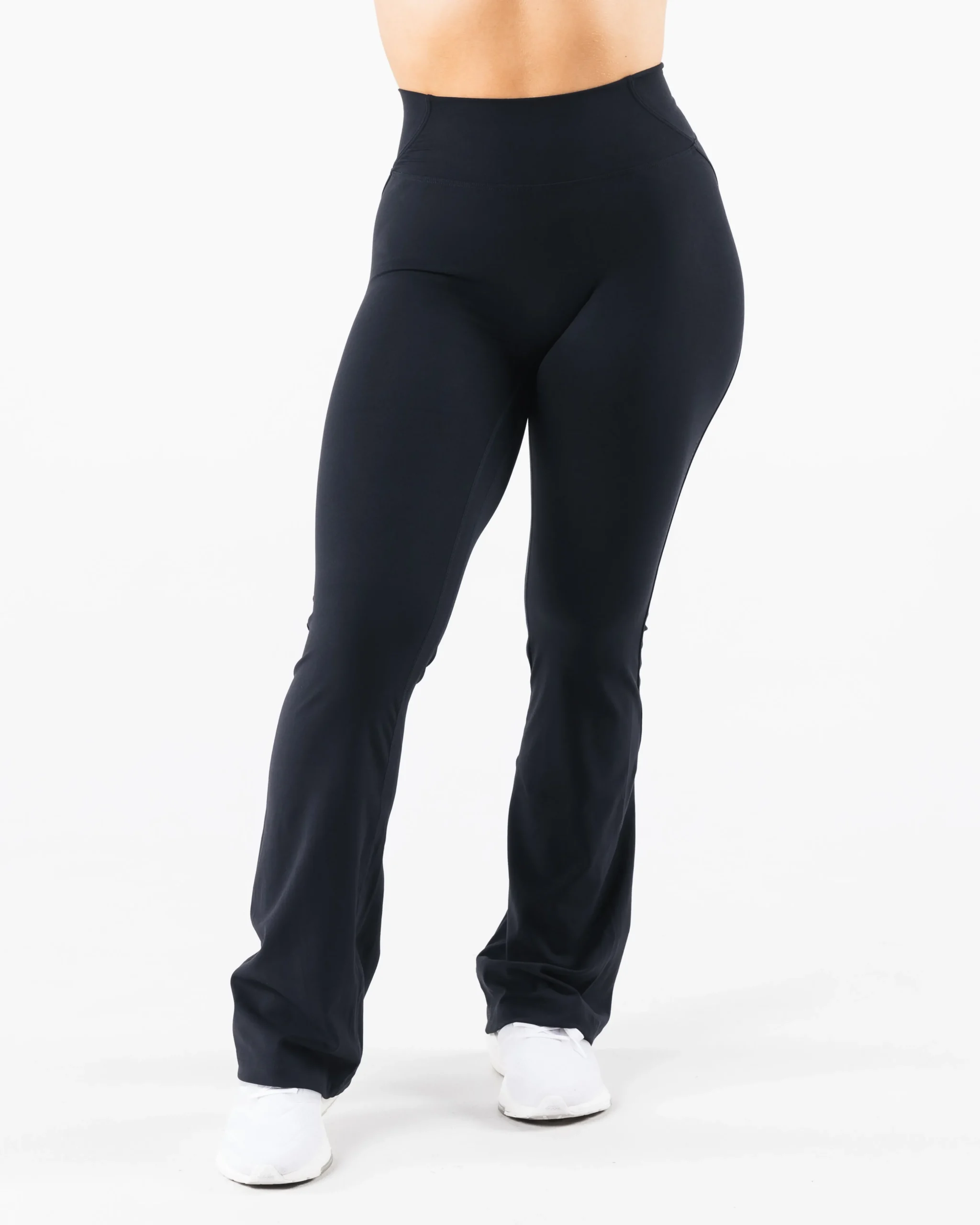 |HIGHLIGHTS|Sculpting seamlines|Buttery soft hand feel|High Stretch|Flared leg|Sizes XXS / XS / S / M – 31″ inseam|Sizes L / XL / XXL – 32.5″ inseam|FIT SUGGESTION|This itemruns true to Alphalete’s standard sizing.|We recommend sizing up for a more relaxed fit or down for a more compressive fit.|Model is 5’2”/157.5cm, wearing a sizeSwith 39″/99cm hips and 28.5”/72.4cm waist.|MATERIALS AND WASHING DIRECTIONS|75%Nylon,25%Spandex|We recommend washing inside-out on a cold setting|Hang to dry|DESCRIPTION|Discover a fusion of supreme comfort and high-stretch compression with our new Aura fabric. Made with irresistibly soft, brushed fabric, ourpantsoffer you unrestricted movement whether you’re headed to the gym, a yoga class, or simply lounging at home. We’ve strategically placed sculpting seamlines to not only draw in the waist but also enhance the natural shape of the glutes.