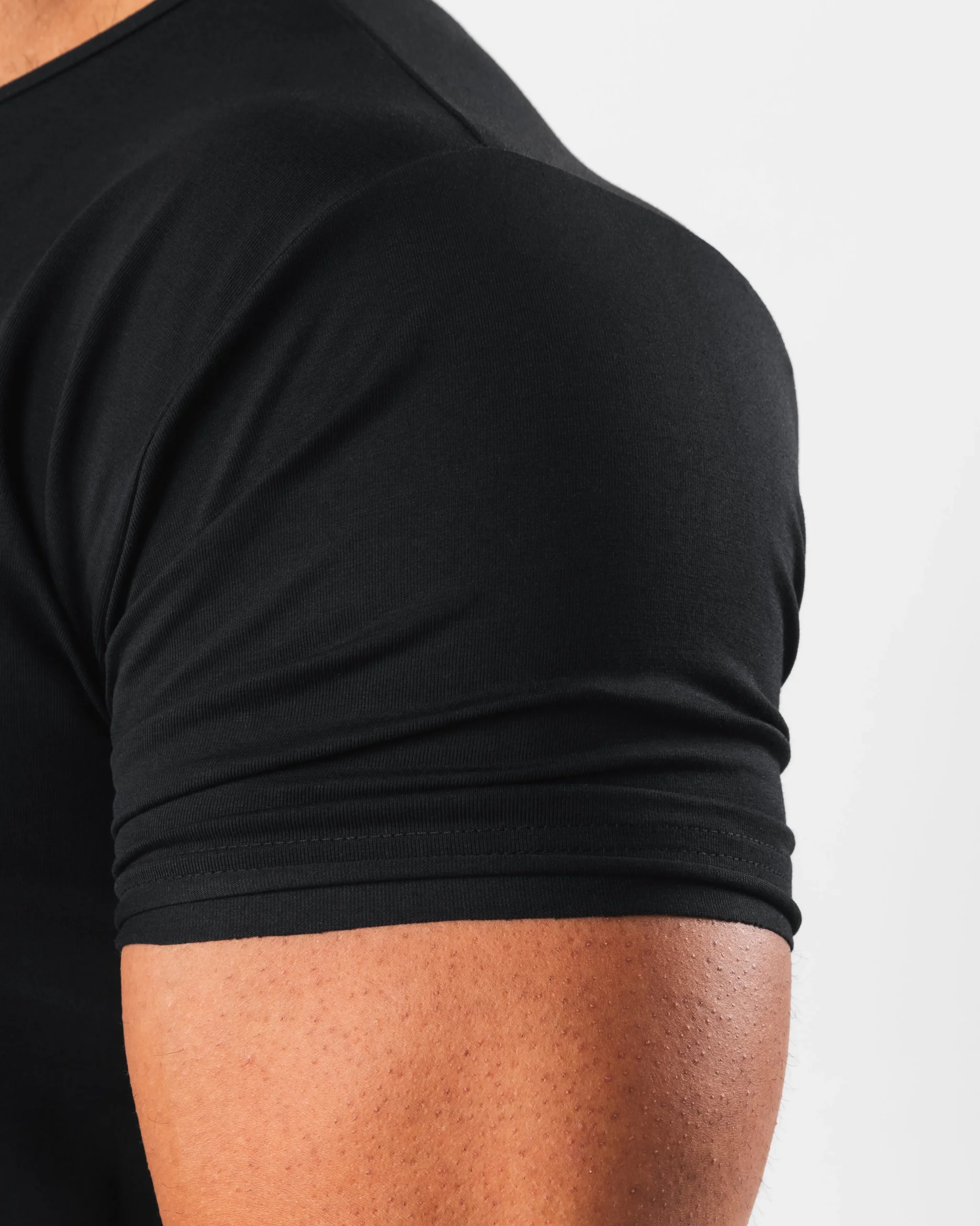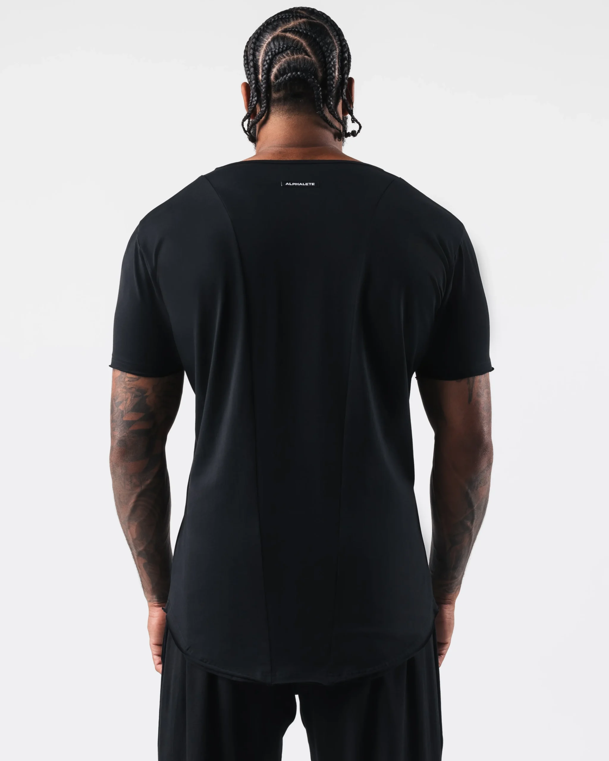 HIGHLIGHTS|Form fitting|Piping finish around neck|Soft and lightweight fabric|Scoop neck opening|FIT SUGGESTION|This item has a slim fit.|Christian is6’0”/183cm, wearing a size XL with a 49.5”/126cm chest.|MATERIALS AND WASHING DIRECTIONS|94% Cotton, 6% Spandex|Comfort|Durability|Stretch|Cold wash with like colors|Cool iron|Hang to dry|Do not bleach|Our lifestyle pieces blend comfort, style,and functionality for use in and out of thegym. Our scoop neck t-shirt features a softlightweight fabric to provide a fittedcomfortable fit.|