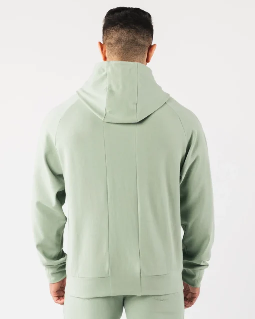 |HIGHLIGHTS|Full length hoodie with oversized fit|Crossover cowl-neck with 3-paneled hood|Stretchy fabric with a soft brushed surface|Structured font and back panels|Arm-defining raglan sleeve seams|Unique hem design|Slip pockets|Alphalete union logo in raised silicone on chest in tonal|FIT SUGGESTION|This item has an oversized fit.|Model is 5’10”/177.8cm, wearing a size Lwith a 44.5”/113cm chest.|MATERIALS AND WASHING DIRECTIONS|95% Cotton, 5% Elastane|We recommend washing inside-out on a cold setting|Hang to dry|Anticipated shrinkage will occur after initial wash|DESCRIPTION|Our Identity Collection offers Luxurious, brushed surface with an added silicone wash gives a plush and velvety hand-feel. All Identity piece are made with 4-way stretch fabric, offering both superior shape retention and warmth. This range was designed to increase internal comfort, without sacrificing aesthetics. This collection packs physique enhancing, confidence inducing seam work that is able to withstand intense activity through structurally supportive darts and panels. The Identity collection uses only the highest quality of infused, silicone branding that delivers state-of-art, water resistant technology and is incredibly durable. Identity outerwear offers a relaxed fit for the ideal lounge look, while identity bottoms feature expert teeing for a fitted, sporty look.