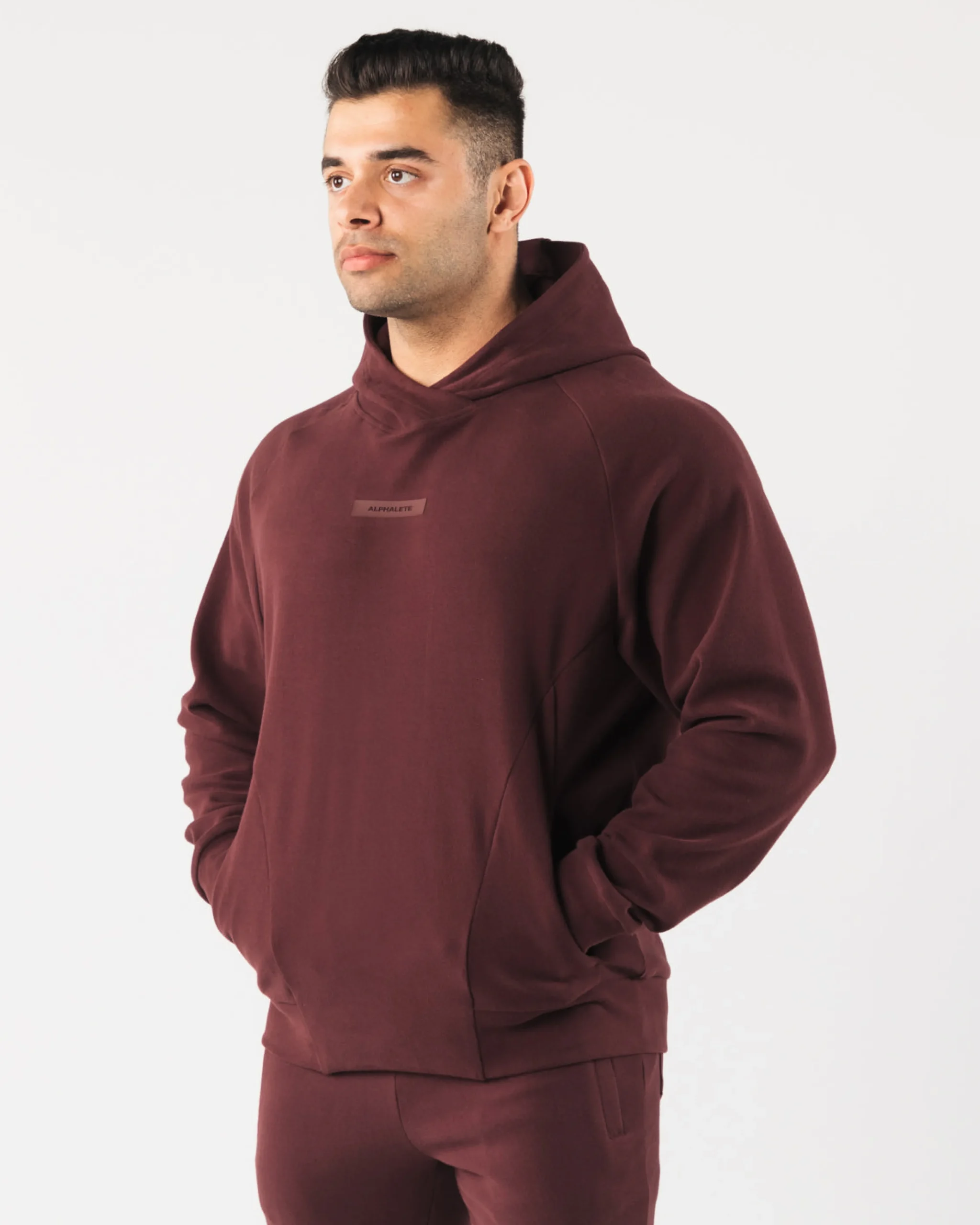 |HIGHLIGHTS|Full length hoodie with oversized fit|Crossover cowl-neck with 3-paneled hood|Stretchy fabric with a soft brushed surface|Structured font and back panels|Arm-defining raglan sleeve seams|Unique hem design|Slip pockets|Alphalete union logo in raised silicone on chest in tonal|FIT SUGGESTION|This item has an oversized fit.|Model is 5’10”/177.8cm, wearing a size Lwith a 44.5”/113cm chest.|MATERIALS AND WASHING DIRECTIONS|95% Cotton, 5% Elastane|We recommend washing inside-out on a cold setting|Hang to dry|Anticipated shrinkage will occur after initial wash|DESCRIPTION|Our Identity Collection offers Luxurious, brushed surface with an added silicone wash gives a plush and velvety hand-feel. All Identity piece are made with 4-way stretch fabric, offering both superior shape retention and warmth. This range was designed to increase internal comfort, without sacrificing aesthetics. This collection packs physique enhancing, confidence inducing seam work that is able to withstand intense activity through structurally supportive darts and panels. The Identity collection uses only the highest quality of infused, silicone branding that delivers state-of-art, water resistant technology and is incredibly durable. Identity outerwear offers a relaxed fit for the ideal lounge look, while identity bottoms feature expert teeing for a fitted, sporty look.