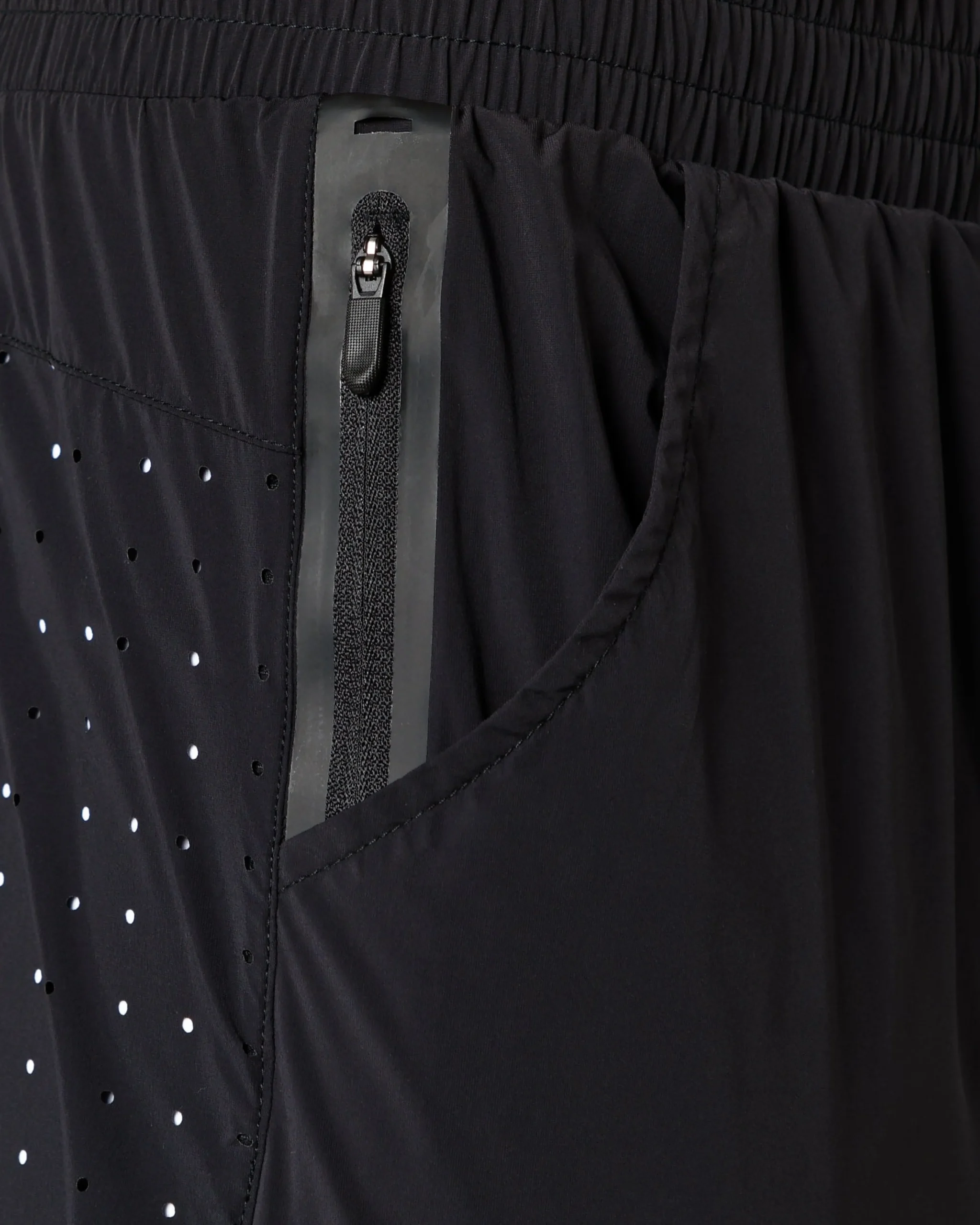 |HIGHLIGHTS|Woven, compression-lined legging|5.5” Inseam|Front slip pockets|Size Up, if you don’t like compressive fit|Waterproof zipper on the right side with YKK zippers|Laser cut perforations for breathability|Custom branded flat profile drawstrings|Alphalete Infinity logo in premium silicone|Alphalete Athletics logo printed on left thigh|FIT SUGGESTION|This item runs true to Alphalete’s standard sizing.|If you are between sizes, we recommend sizing up for a relaxed fit.|Model is 6’3”/191cm, wearing a size L with a 38.5”/92cm waist.|MATERIALS AND WASHING DIRECTIONS|80% Nylon, 20% Elastane|We recommend washing inside-out on a cold setting|Hang to dry|DESCRIPTION|Designed for technical performance and recreation, the Infinity Collection offers a range of products guaranteed to take you through your toughest workouts. Alphalete understands the close synergy between garment and textile, which is why all infinity fabrics are expertly selected to provide superior sports performance. Alphalete Infinity speaks to those who demand the most out of life and have similar demands of their apparel. The Infinity Collection offers everything you’ll need to build the ultimate sports performance wardrobe. The range offers a wide selection of woven bottoms, knitted tops and compact all-conditions outerwear. Since day one, Alphalete has been leading the race to create the best sports performance wear on the market, consider this our victory lap.