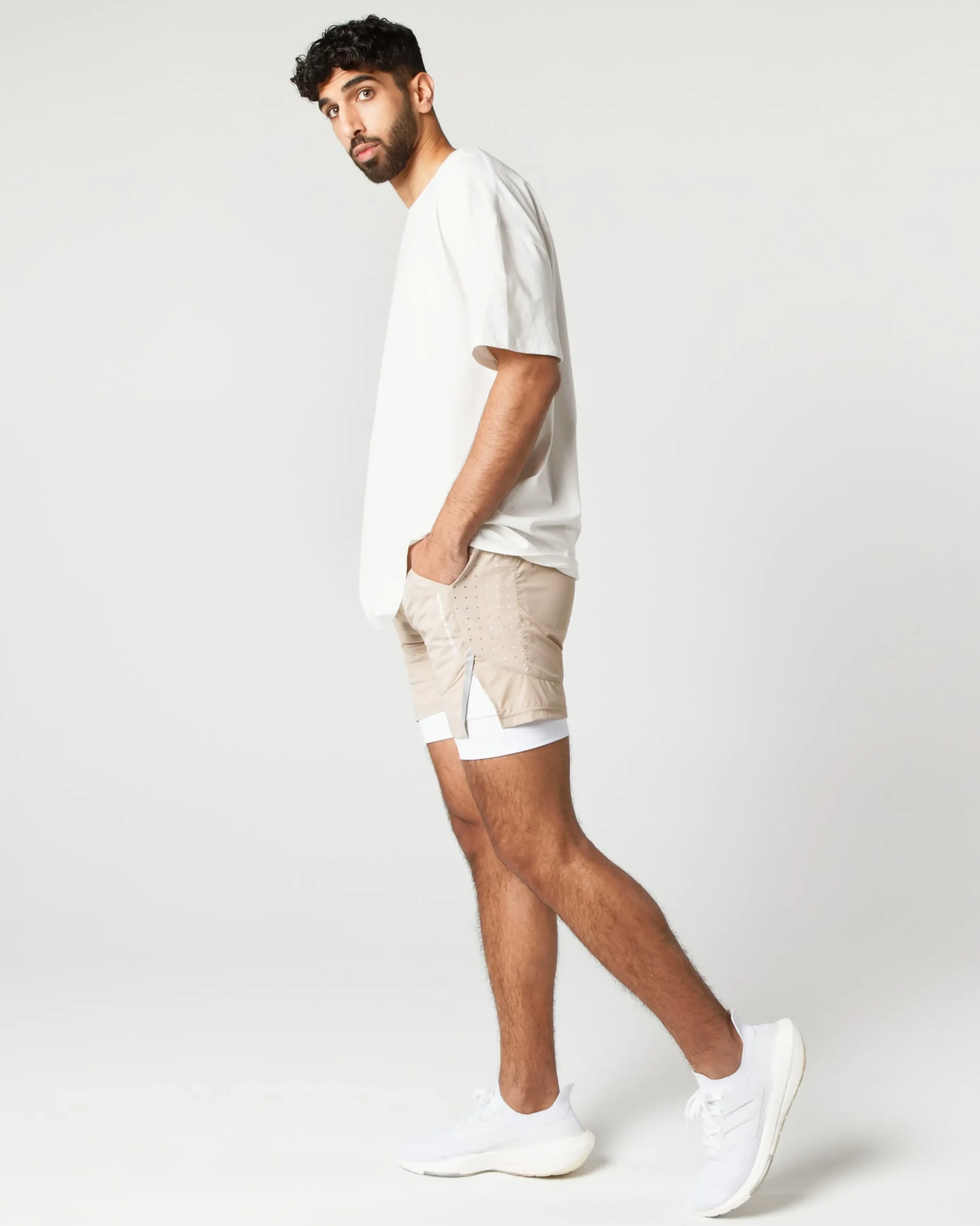 |HIGHLIGHTS|Woven, compression-lined short|5.5” Inseam|Front slip pockets|Size Up, if you don’t like compressive fit|Runs small, consider sizing up|Upgraded smoother and softer Infinity fabric|Waterproof zipper on the right side with YKK zippers|Laser cut perforations for breathability|Custom branded flat profile drawstrings|Alphalete Infinity logo in premium silicone|Alphalete Athletic logo printed on left thigh|FIT SUGGESTION|This item runs true to Alphalete’s standard sizing.|If you are between sizes, we recommend sizing up for a relaxed fit.|Model |is 6’3”/191cm, wearing a size L with a 38.5”/92cm waist.|MATERIALS AND WASHING DIRECTIONS|80% Nylon, 20% Elastane|We recommend washing inside-out on a cold setting|Hang to dry|DESCRIPTION|Designed for technical performance and recreation, the Infinity Collection offers a range of products guaranteed to take you through your toughest workouts. Alphalete understands the close synergy between garment and textile, which is why all infinity fabrics are expertly selected to provide superior sports performance. Alphalete Infinity speaks to those who demand the most out of life and have similar demands of their apparel. The Infinity Collection offers everything you’ll need to build the ultimate sports performance wardrobe. The range offers a wide selection of woven bottoms, knitted tops and compact all-conditions outerwear. Since day one, Alphalete has been leading the race to create the best sports performance wear on the market, consider this our victory lap.