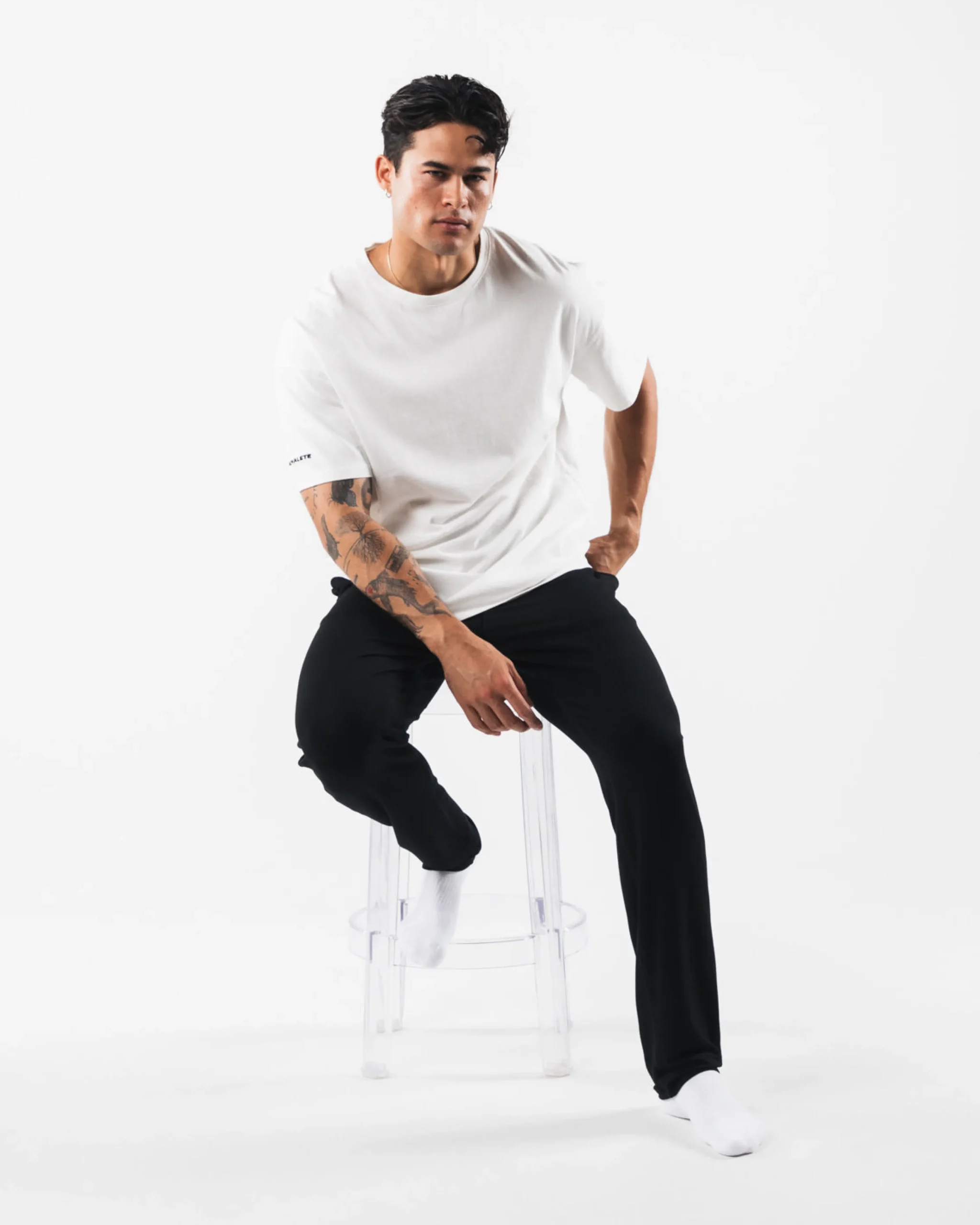 |HIGHLIGHTS|Relaxedfit|Side seam pockets|Silicon Alphalete branding at waistband|FIT SUGGESTION|This item runs true to Alphalete’srelaxed fit.|Model is 6’0”/182.8cm, wearing a size Mwith a 31”/78.74cm waist.|MATERIALS AND WASHING DIRECTIONS|94% Rayon, 6% Elastane|We recommend washing inside-out on a cold setting|Hang to dry|An elevated version of men’s loungewear. Each piece is crafted with luxurious rayon terry, a fabric known for its breathability and moisture-wicking properties. As an added advantage, these garments are hypoallergenic and sustainable. Rayon, derived from plant-based fibers, provides both comfort and consciousness towards the environment.
