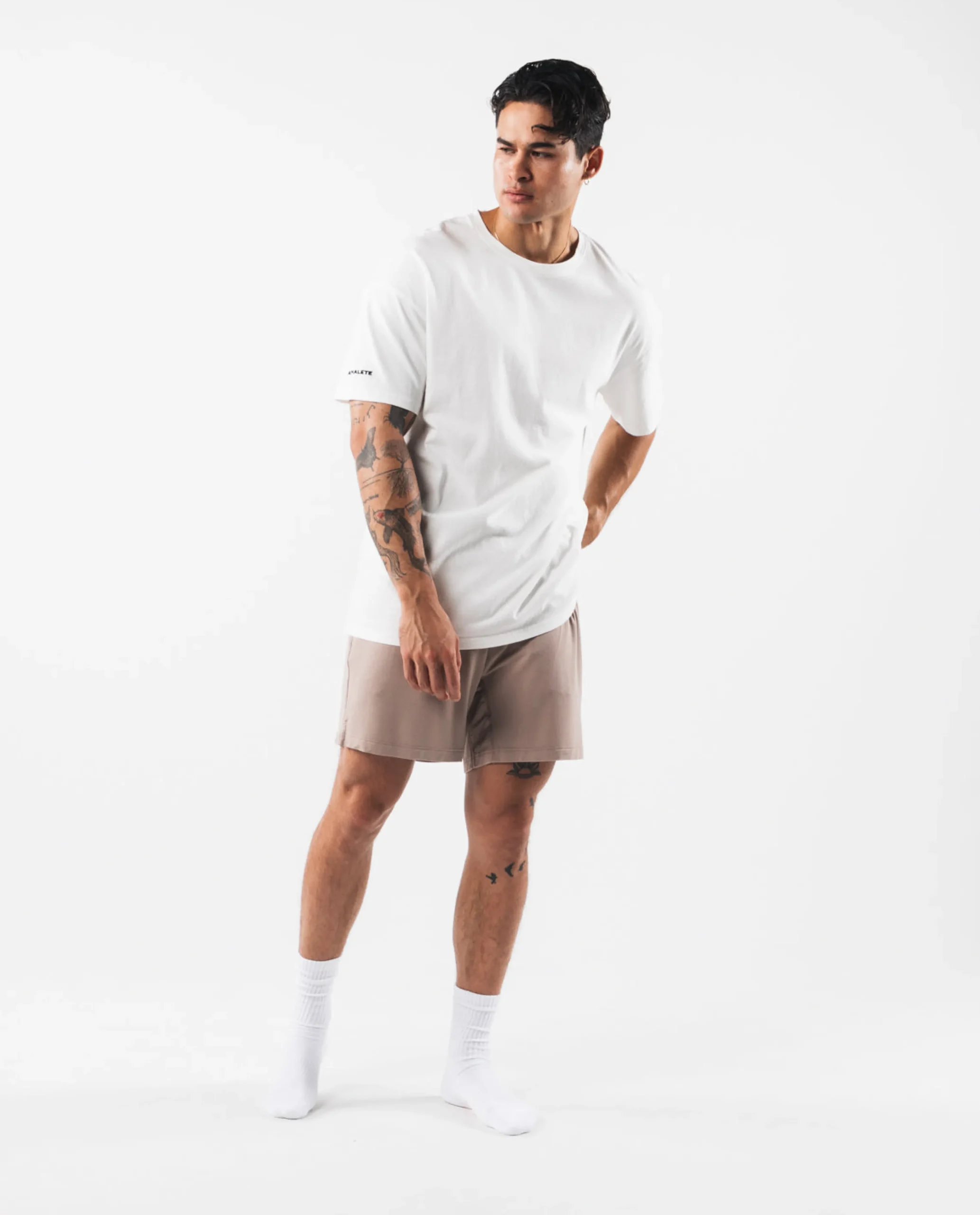 |HIGHLIGHTS|Relaxedfit|6″ inseam|Side seam pockets|Silicon Alphalete branding at waistband|FIT SUGGESTION|This item runs true to Alphalete’srelaxedfit.|Model is 6’0”/182.8cm, wearing a size Mwith a 31”/78.74cmwaist.|MATERIALS AND WASHING DIRECTIONS|94% Rayon, 6% Elastane|We recommend washing inside-out on a cold setting|Hang to dry|An elevated version of men’s loungewear. Each piece is crafted with luxurious rayon terry, afabric known for its breathability and moisture-wicking properties. As an added advantage,these garments are hypoallergenic and sustainable. Rayon, derived from plant-based fibers,provides both comfort and consciousness towards the environment.