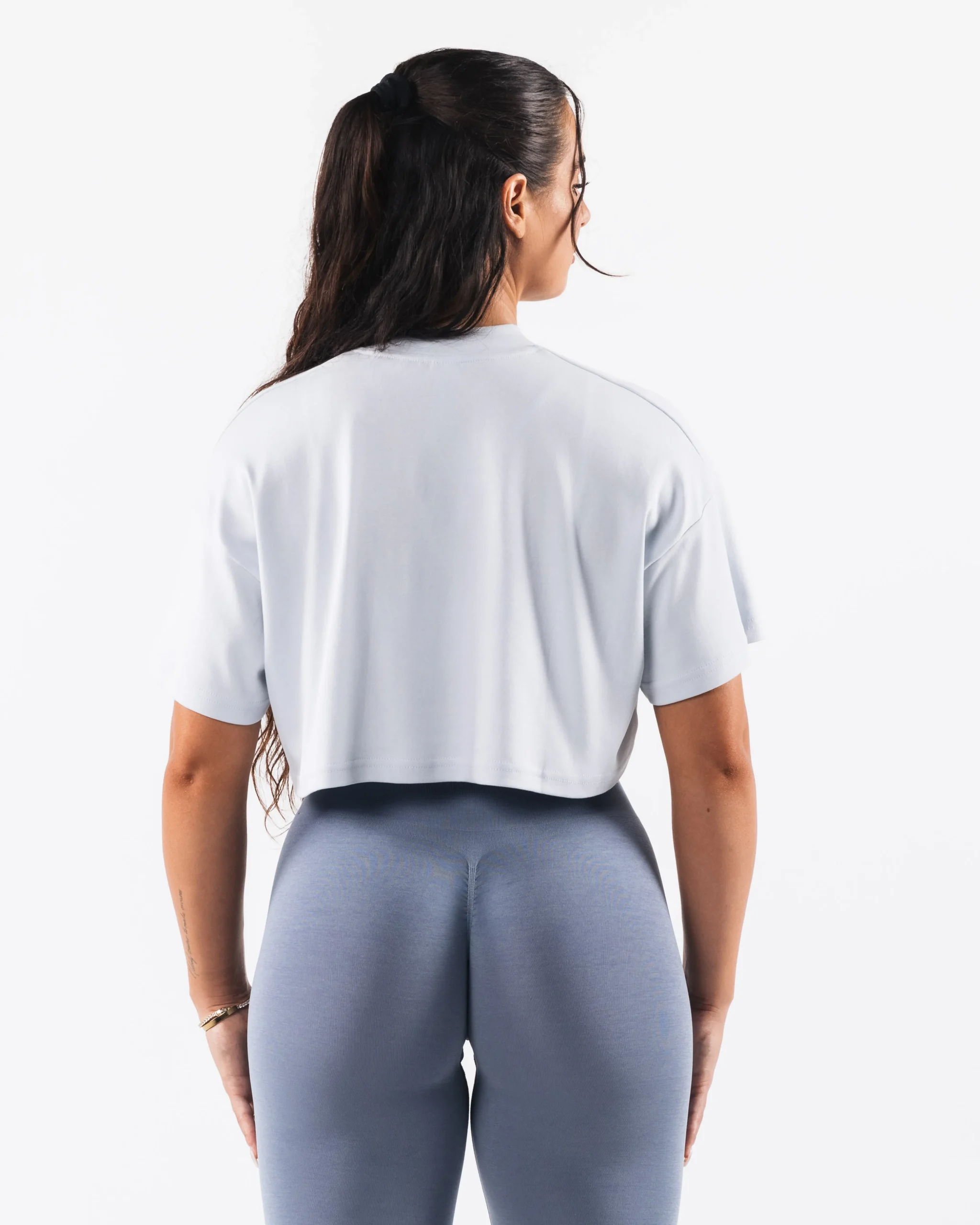 |HIGHLIGHTS|Relaxed fit|Foam print|Cotton interlock|Lightweight u0026amp; Flexible|FIT SUGGESTION|This itemruns true to Alphalete’s standard sizing.|We recommend sizing up for a more relaxed fit or down for a more compressive fit.|Model is 5’8”/172.2cm, wearing a sizeSwith36″/91.4cmbust.|MATERIALS AND WASHING DIRECTIONS|100%Cotton|We recommend washing inside-out on a cold setting|Hang to dry|DESCRIPTION|Introducing Republic – the perfect merge of style and performance. Made with 100% cotton, this tee is durable and comfortable. The Republic Crop Tee features a foam print logo combined with an embroidered slogan. Mix and match with our collection for the perfect workout outfit.