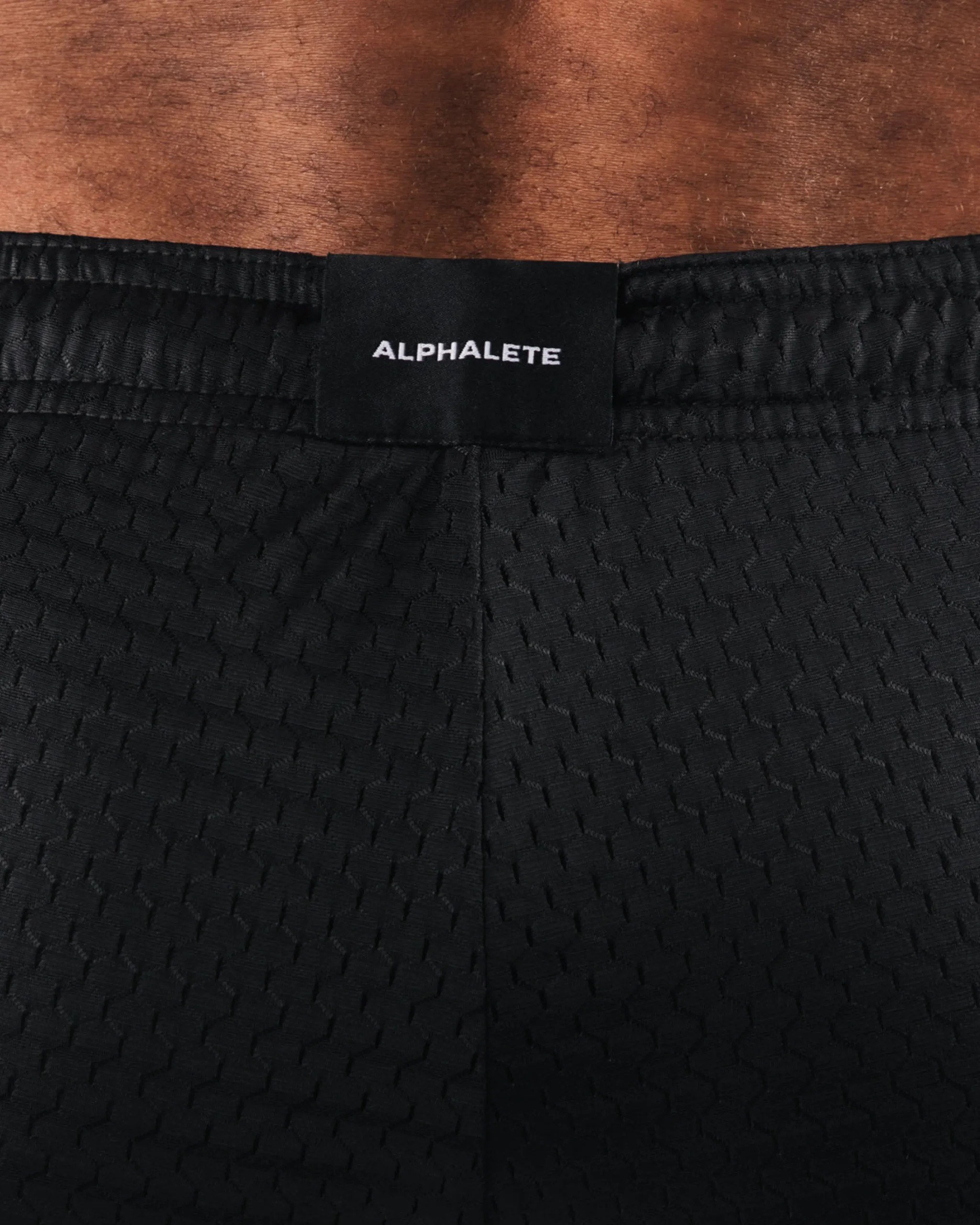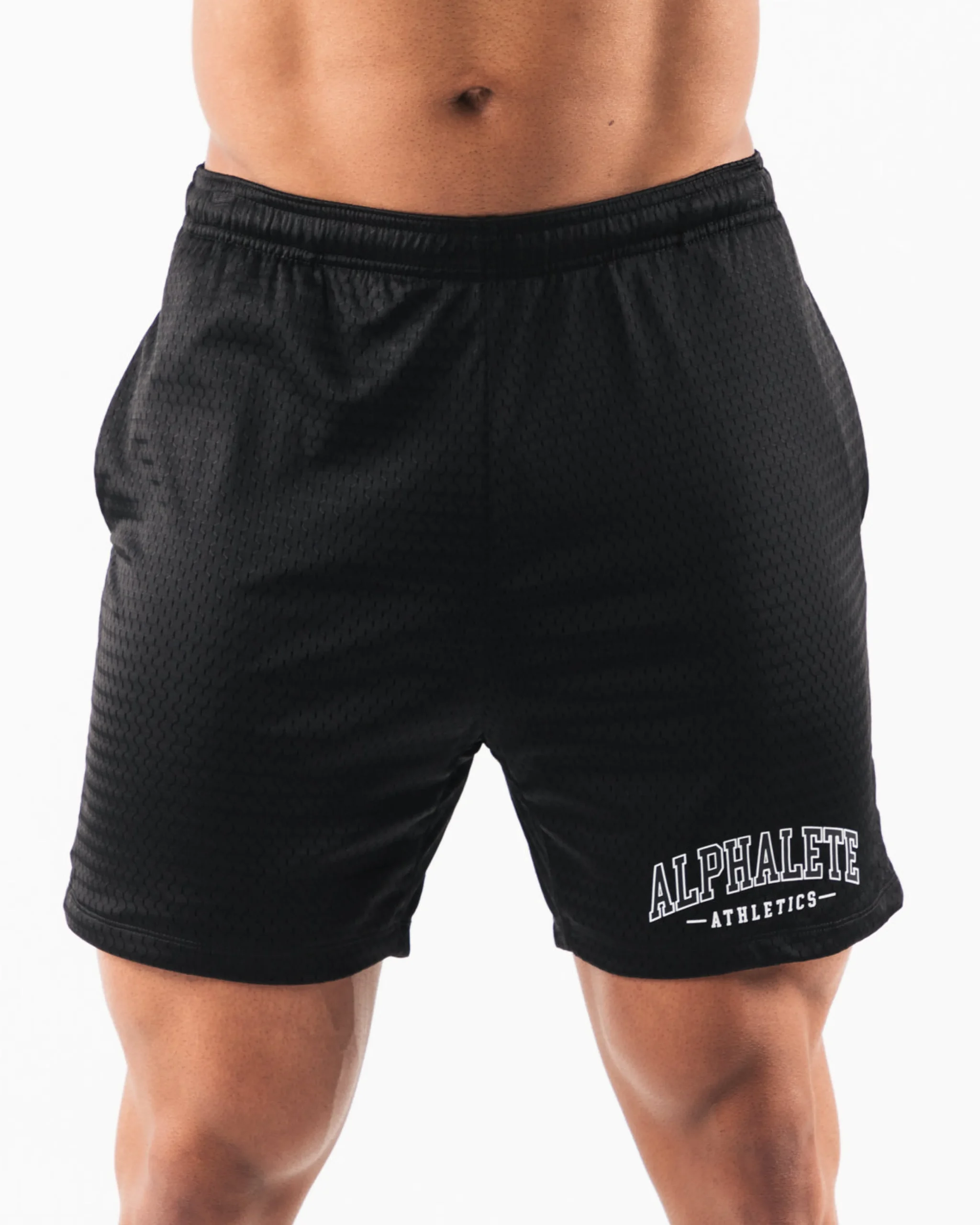 |HIGHLIGHTS|Diamond mesh on outside|Silky smooth on inside|Side slip pockets|AlphaleteAthletics Graphic on left thigh|Elasticated adjustable waistband with inner mounted drawstrings|Custom woven branded label on back waistband|Stretchy and cool to the touch|Soft touch rubber logo|6″ Inseam|FIT SUGGESTION|This item is intended to berelaxedfit.|If you are between sizes, we recommend sizing up for a relaxed fit.|Model is 6’0″/182cm wearing a size M with a 32.5″/82.5cm waist.|MATERIALS AND WASHING DIRECTIONS|90% Polyester and 10% Spandex|We recommend washing inside-out on a cold setting|Hang to dry|Elevate your comfort and style with our mesh shorts. Featuring a luxurious lined mesh fabric, these shorts provide a cool, soft, and silky feel, making them perfect forin and out the gym.With their relaxed fit and premium details, these shorts are a must-have addition to your wardrobe.|
