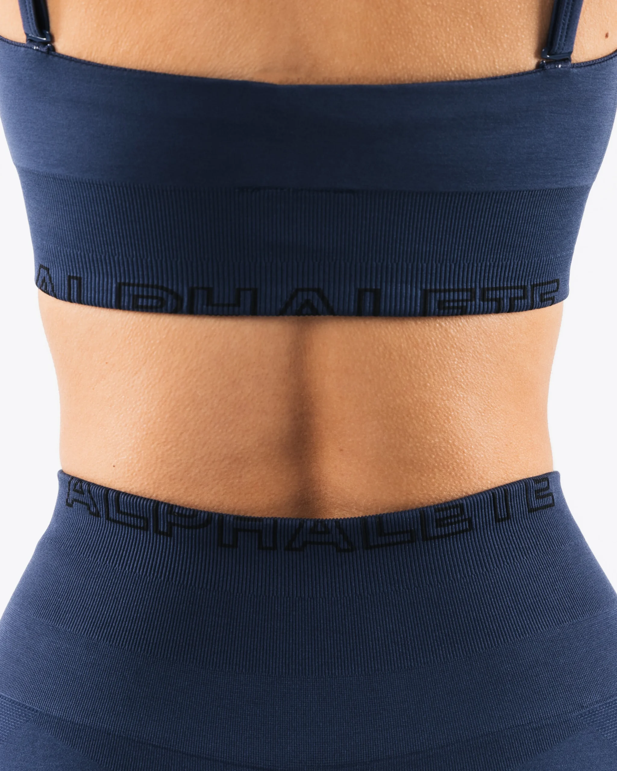 HIGHLIGHTS|Seamless knit|Longline bra|Compression bra band|Stitched special edition logo|Cup size: A/B/C/D|FIT SUGGESTION|This itemruns true to Alphalete’s standard seamless fit.|We recommend sizing up for a comfortable fit.|Nikki is 5’8”/172.7cm, wearing a size XS with a 31.5”/80cm bust.|MATERIALS AND WASHING DIRECTIONS|51% Polyamide, 38% Polyester, 11% Elastane|We recommend washing inside-out on a cold setting|Hang to dry|DESCRIPTION|With the same tried and true amplify fabric, the new Gemini Bra takes it up a notch. This new bra features a longline silhouette with a compressive bra band, and a 3/4 zip to allow ample breathability and versatility in styling. Our original amplify fabric creates an irresistibly silky, smooth hand-feel while the full-interlocking knit offers the flexibility to move freely.