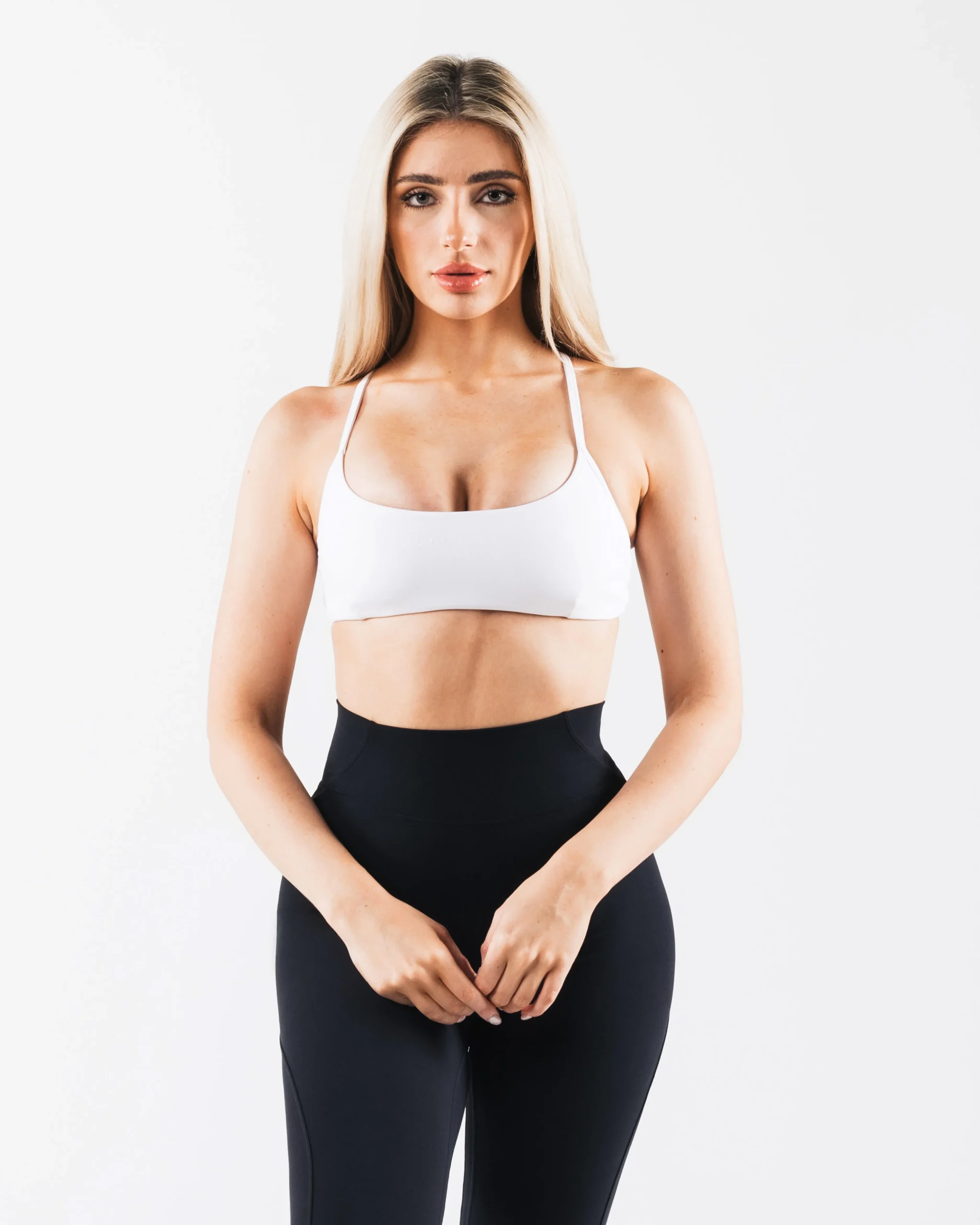 |HIGHLIGHTS|Flattering cut|Buttery soft hand feel|High Stretch|Open strappy back design|A/B cup size|FIT SUGGESTION|This item runs true to Alphalete’s standard size.|If you are between sizes, we recommend sizing up.|Model is 5’7”/170cm, wearing a size XS with a 33.5”/85cm bust.|MATERIALS AND WASHING DIRECTIONS|75% Nylon, 25% Spandex|We recommend washing inside-out on a cold setting|Hang to dry|DESCRIPTION|Discover a fusion of supreme comfort and high-stretch compression with our new Aura fabric. Made with irresistibly soft, brushed fabric, ourbrasoffer you unrestricted movement whether you’re headed to the gym, a yoga class, or simply lounging at home. Thestrappy open backand flattering cut hug and enhance all the right places.