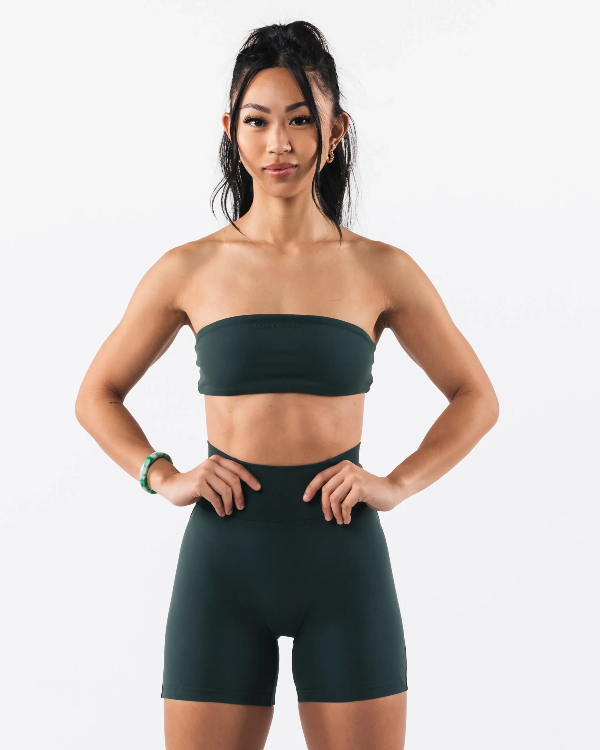 |HIGHLIGHTS|Flattering cut|Buttery soft hand feel|High Stretch|Silicone edge grip|FIT SUGGESTION|This itemruns true to Alphalete’s standard size.|We recommend sizing up for amore relaxed fit or down for a more compressive fit.|Model is 5’3”/160cm, wearing a size XS with a 30”/77.5cm bust.|MATERIALS AND WASHING DIRECTIONS|75% Nylon, 25% Spandex|We recommend washing inside-out on a cold setting|Hang to dry|DESCRIPTION|Discover a fusion of supreme comfort and high-stretch compression with our new Aura fabric. Made with irresistibly soft, brushed fabric, ourbrasoffer you unrestricted movement whether you’re headed to the gym, a yoga class, or simply lounging at home. Our Aura bandeau bra is the perfect staple for your gym outfits.