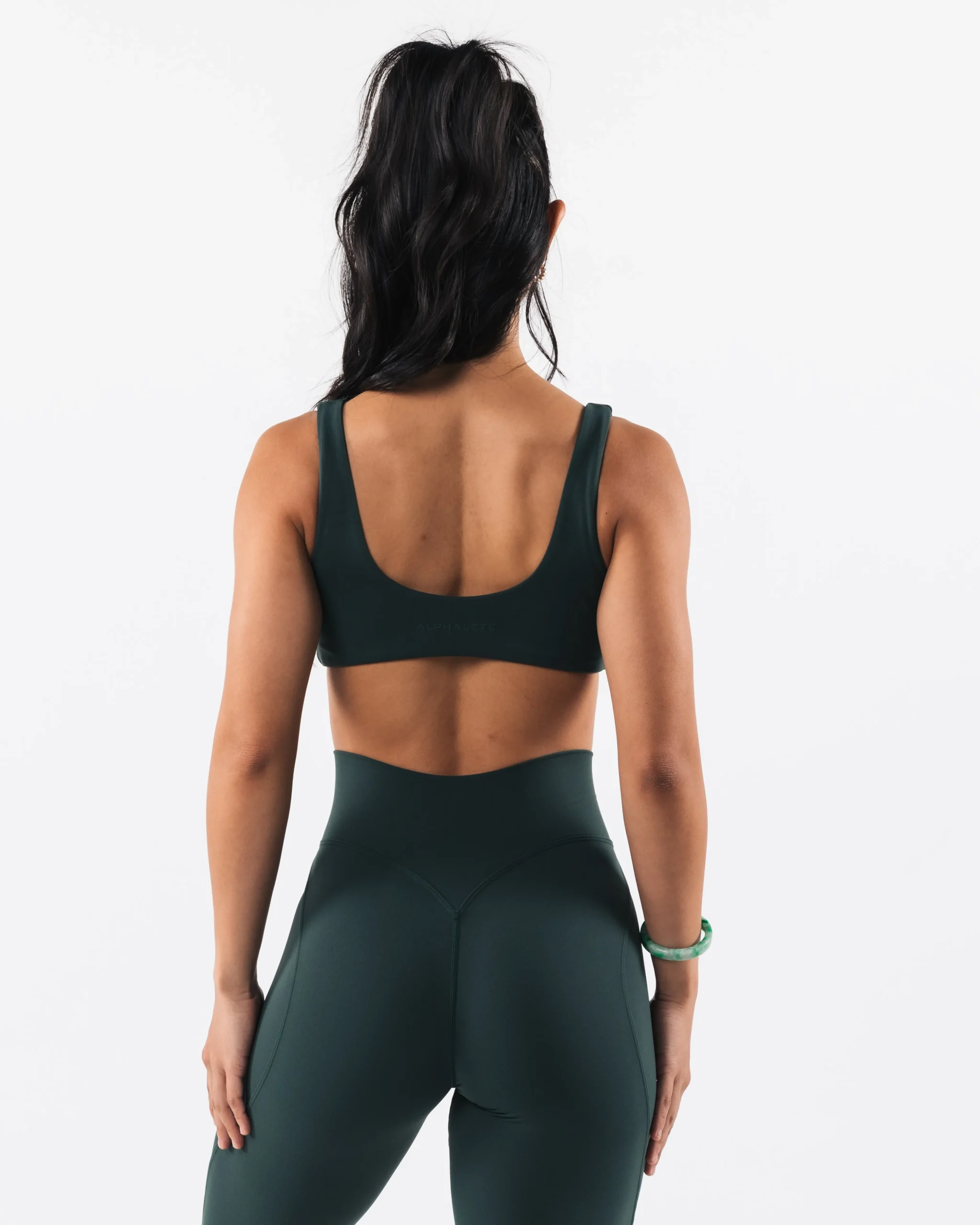 |HIGHLIGHTS|Flattering cut|Buttery soft hand feel|High Stretch|FIT SUGGESTION|This itemruns true to Alphalete’s standard size.|We recommend sizing up for amore relaxed fit or down for a more compressive fit.|Model is 5’3”/160cm, wearing a size XS with a 30”/77.5cm bust.|MATERIALS AND WASHING DIRECTIONS|75% Nylon, 25% Spandex|We recommend washing inside-out on a cold setting|Hang to dry|DESCRIPTION|Discover a fusion of supreme comfort and high-stretch compression with our new Aura fabric. Made with irresistibly soft, brushed fabric, ourbrasoffer you unrestricted movement whether you’re headed to the gym, a yoga class, or simply lounging at home. Theplunging neckline and flattering cut hug and enhance all the right places.