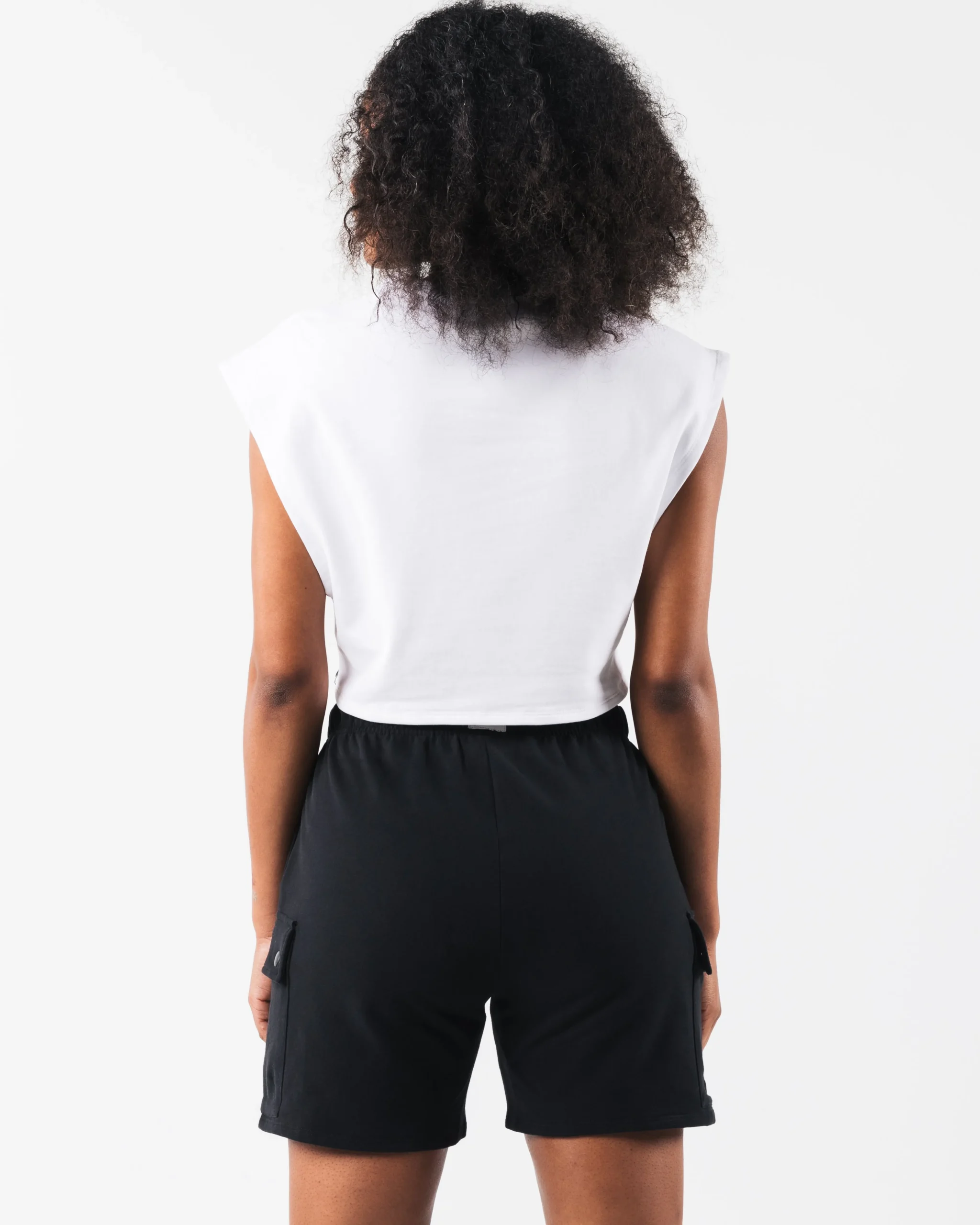 HIGHLIGHTS|Muscle Tee|Brushed fabric|FIT SUGGESTION|This item has a relaxed fit.|Le’Neisha is 5’8”/172.7cm, wearing a size XS with a 34”/86.5cm bust.|MATERIALS AND WASHING DIRECTIONS|95% Cotton, 5% Elastane|We recommend washing inside-out on a cold setting|Hang to dry|DESCRIPTION|This cotton fleece muscle tee is the perfect merge of style and performance. This irresistibly soft fabric feels like butter on. Layer over your favorite Alphalete bra on chilly days for added warmth or to keep the muscles warm before a workout.