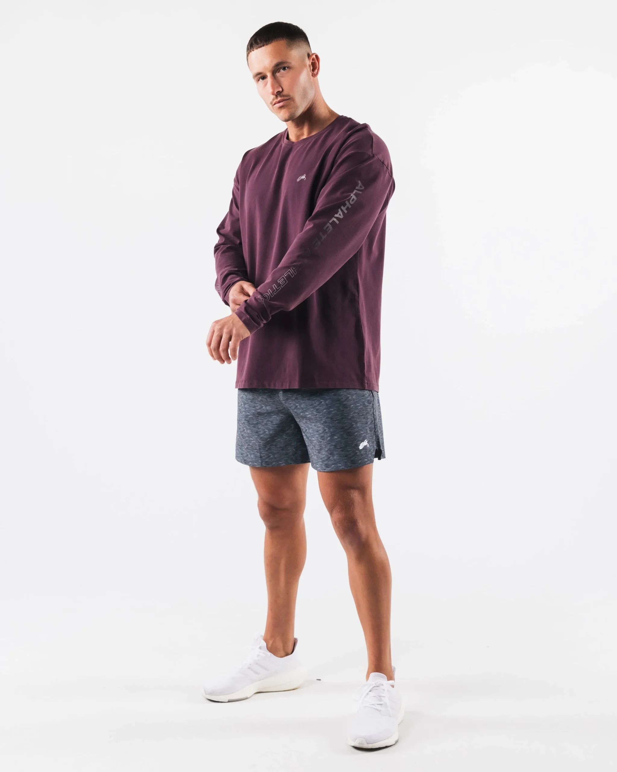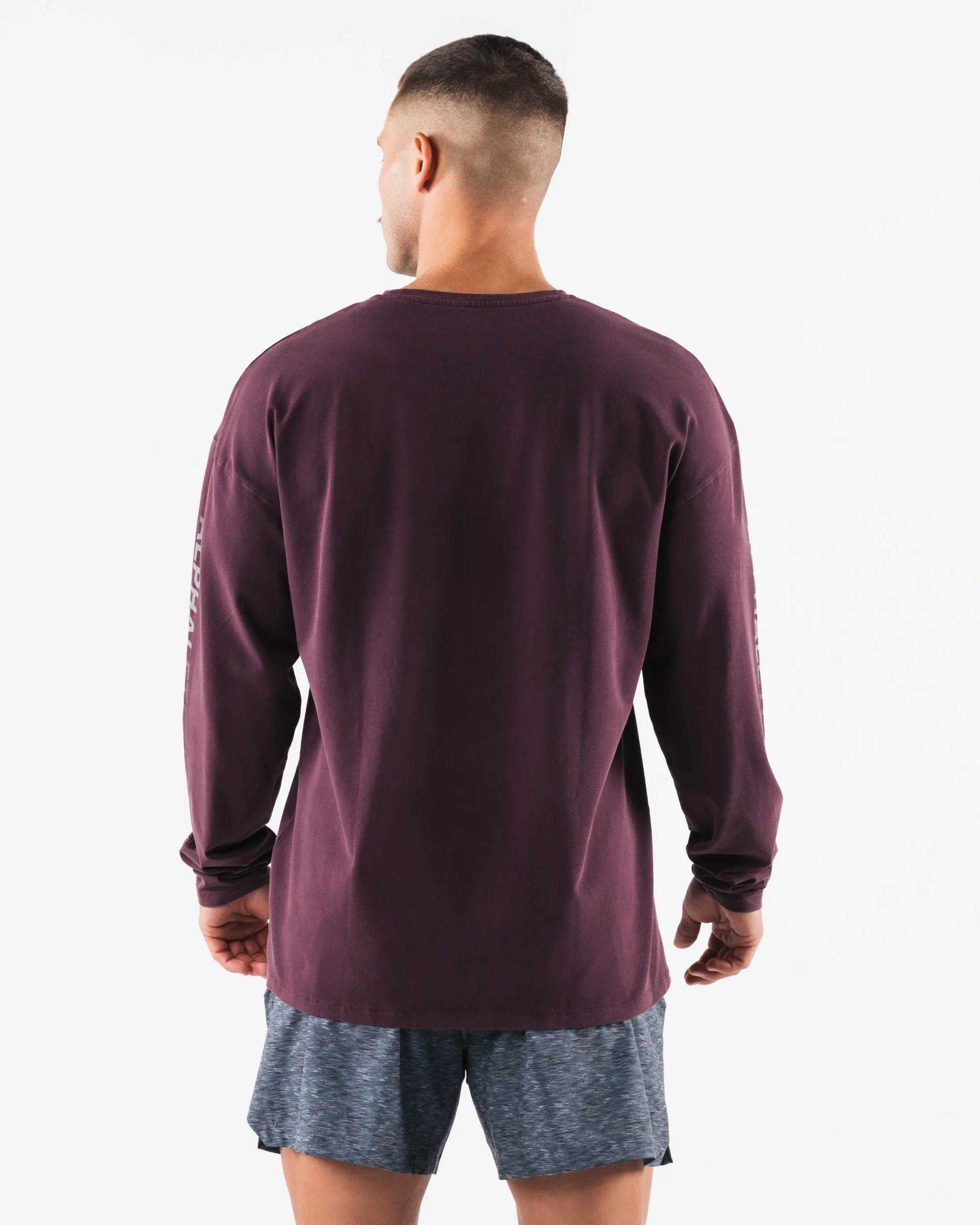 |HIGHLIGHTS|Crew neckline style|Wrist length sleeves|Oversized fit with drop shoulder|Alphalete Breathe More logos on sleeves|Sweat-wicking, breathable material|Smooth and flexible fabric|Straight hemline style|FIT SUGGESTION|This item runs true to Alphalete’soversizedfit.|If you are between sizes, we recommend sizing up.|Model is 6’0”/183cm, wearing a size L with a 43.5”/110.5cmchest.|MATERIALS AND WASHING DIRECTIONS|94% Cotton and 6% Spandex|We recommend washing inside-out on a cold setting|Hang to dry|Anticipated shrinkage will occur after initial wash|Cool to the touch, breathable and with an ultra smooth feel, our signature fabric is made to withstand any activity. Sweat-wicking properties allow for quick drying, while the cooling effect allows for body heat to be repelled away instantly. The heavy weight of the cotton provides garments with a dense hand-feel and more structured effect while maintaining softness. With most designs intended to be fitted, these durable garments are made to wear perfectly after being washed. Features custom, print branding in a wide range of unique graphic designs. Performance items offer relaxed, oversized fits as well as our classic Alphalete tapered fit in both full-length and cropped styles for a custom-made look.