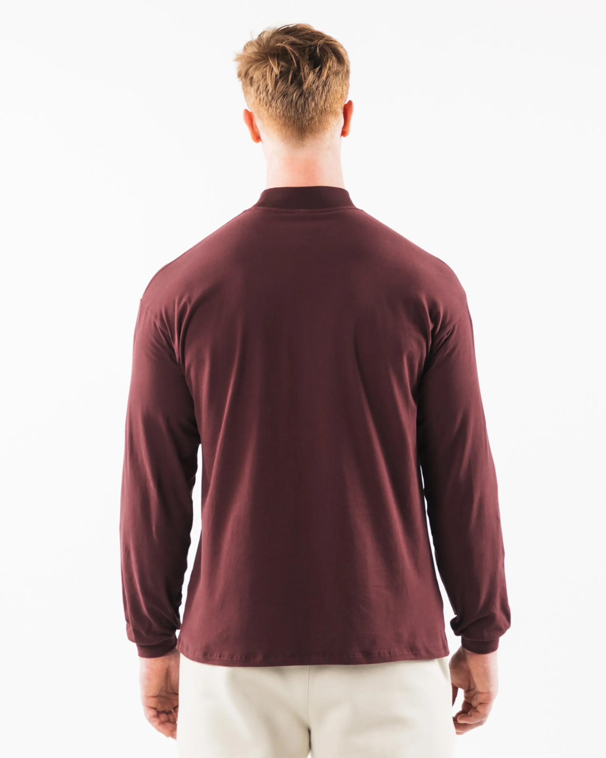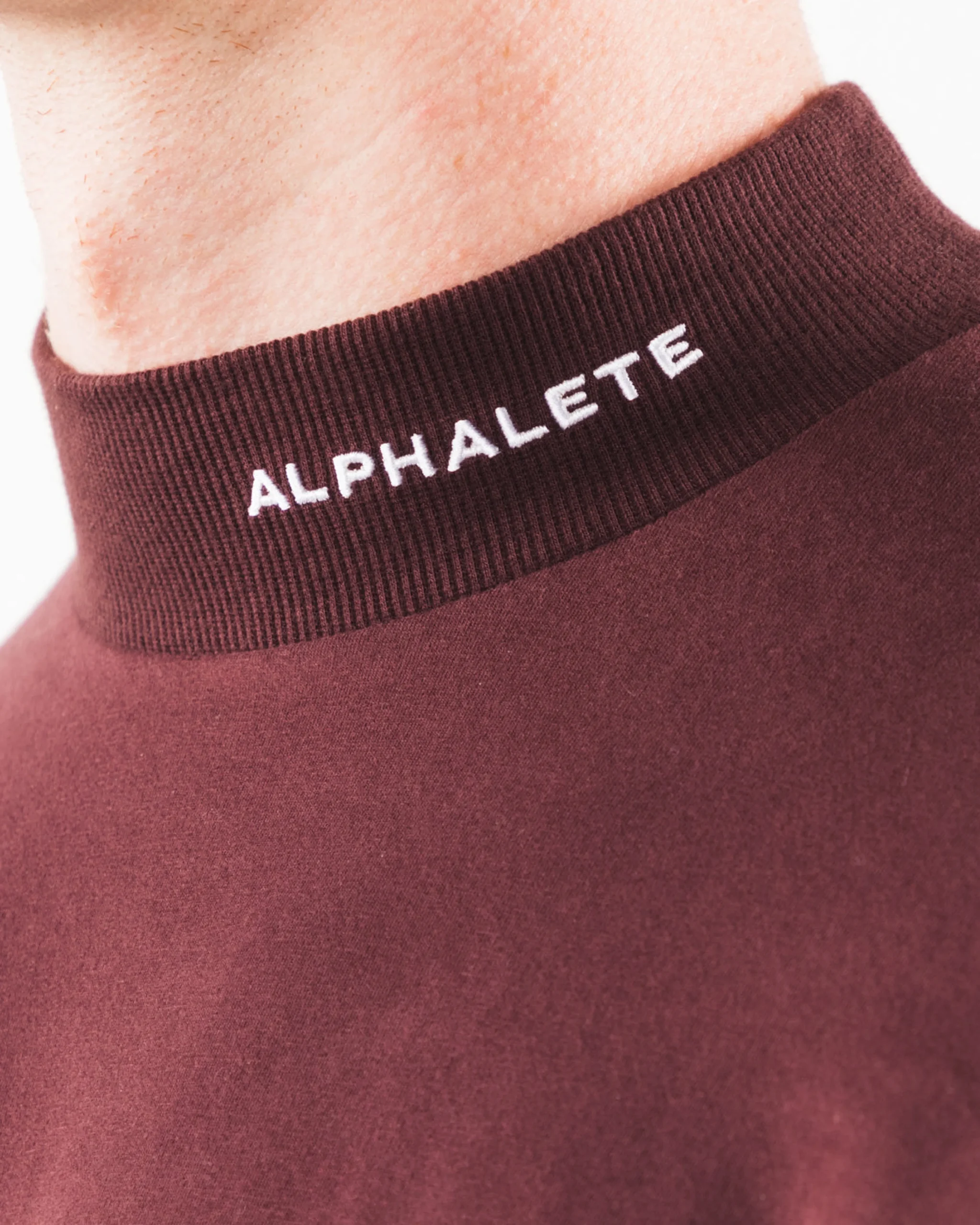 |HIGHLIGHTS|Relaxed Fit|Brushed surface for soft hand feel|Lightweight u0026amp; stretchy|Ribbed mock neck|Embroidered logo on collar|FIT SUGGESTION|This item runs true to Alphalete’srelaxedfit.|If you are between sizes, we recommend sizing up.|Model is 6’5”/195.5cm, wearing a size XL with a 43”/109.2cmchest.|MATERIALS AND WASHING DIRECTIONS|95%Cotton and 5%|Spandex|We recommend washing inside-out on a cold setting|Hang to dry|This spring we introduce you to our new lightweight, ultra stretchy, all-purpose fabric. Each brushed piece undergoes a gentle surface treatment that results in giving the user a new favorite go to top.
