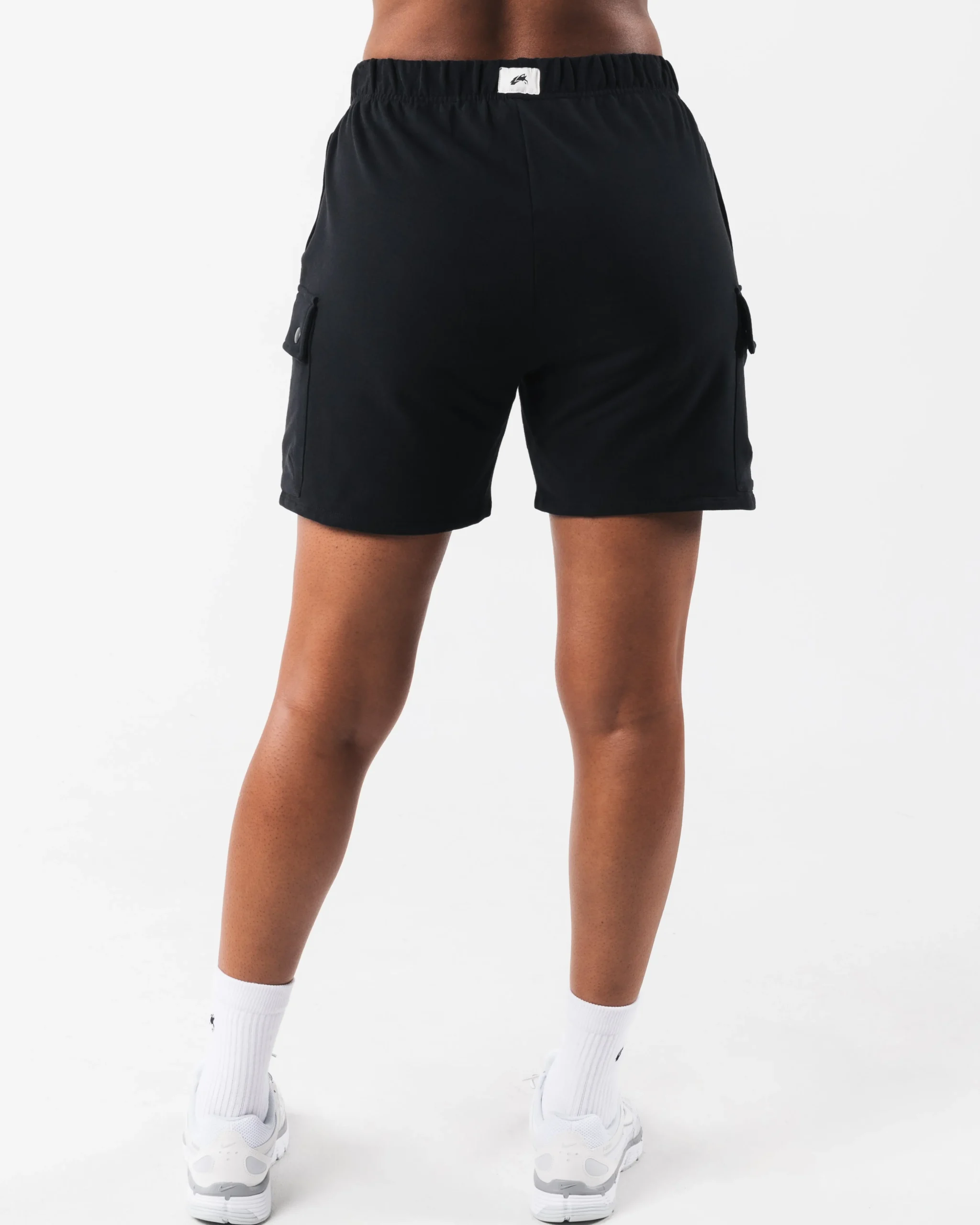 HIGHLIGHTS|5.5″ inseam|Brushed fabric|FIT SUGGESTION|This item has a relaxed fit.|Le’Neisha is 5’8”/172.7cm, wearing a size M with a 27.5”/70cm waist.|MATERIALS AND WASHING DIRECTIONS|95% Cotton, 5% Elastane|We recommend washing inside-out on a cold setting|Hang to dry|DESCRIPTION|This cotton fleece cargo short is the perfect merge of style and performance. This irresistibly soft fabric feels like butter on. Layer over your favorite Alphalete bottoms on chilly days for added warmth or or wear on their own for a street style look at the gym.