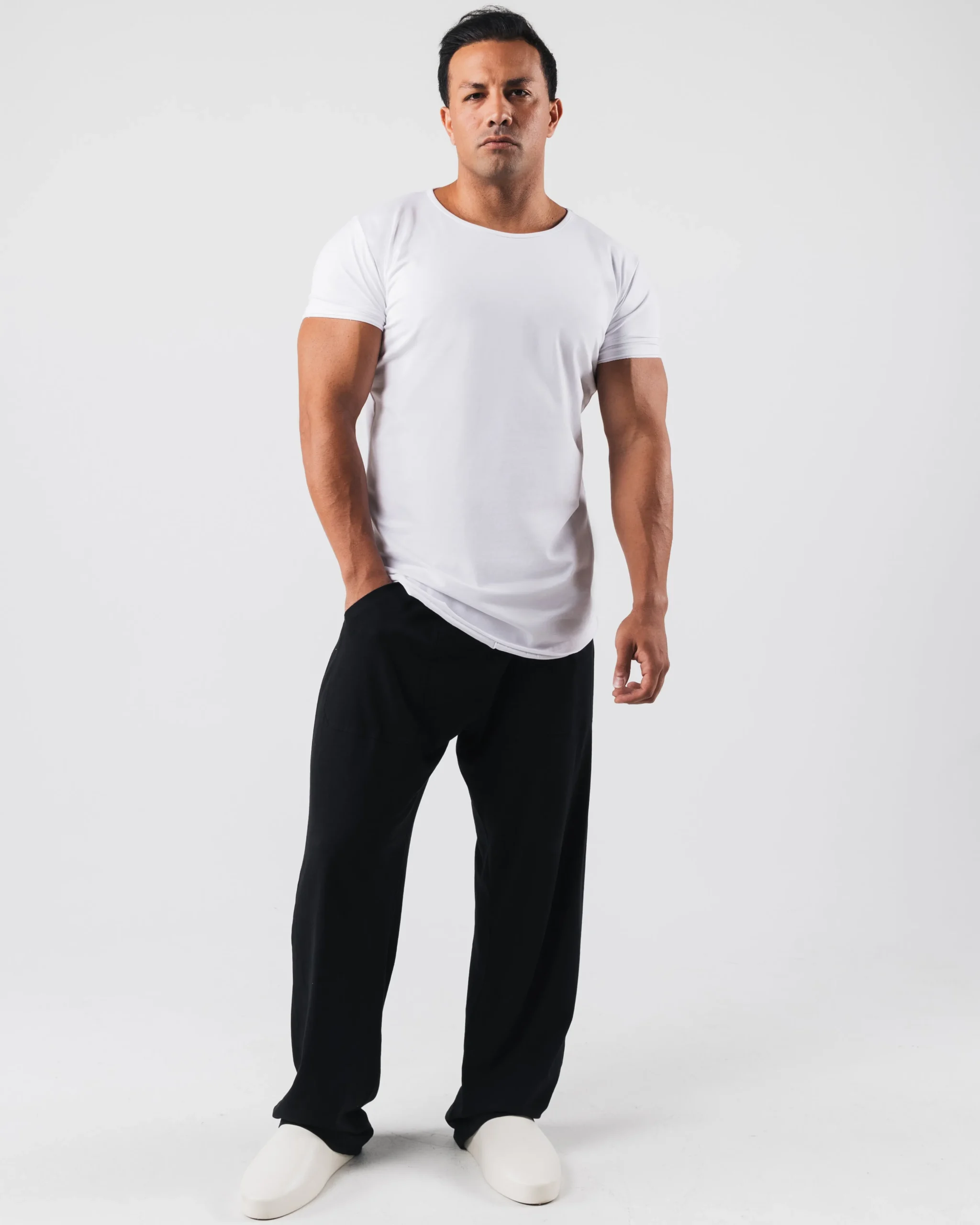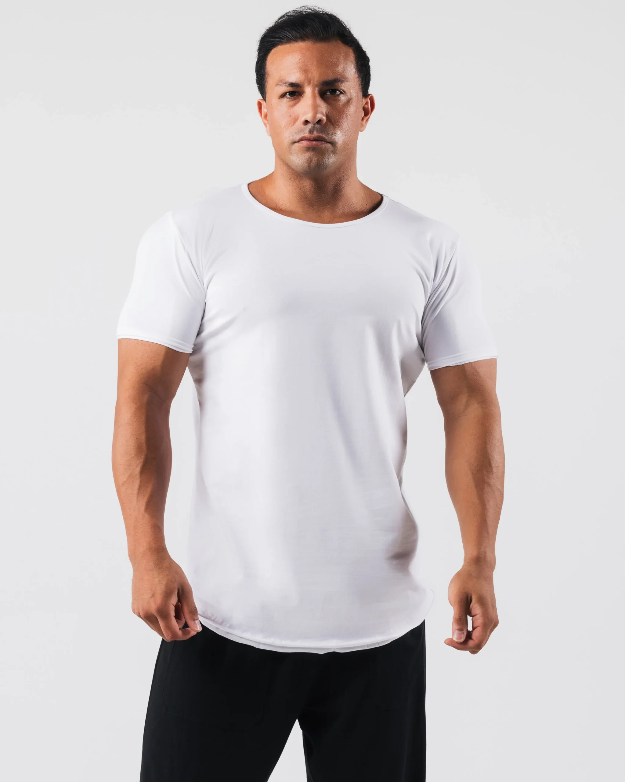 HIGHLIGHTS|Form fitting|Piping finish around neck|Soft and lightweight fabric|Scoop neck opening|FIT SUGGESTION|This item has a slim fit.|Christian is6’0”/183cm, wearing a size XL with a 49.5”/126cm chest.|MATERIALS AND WASHING DIRECTIONS|94% Cotton, 6% Spandex|Comfort|Durability|Stretch|Cold wash with like colors|Cool iron|Hang to dry|Do not bleach|Our lifestyle pieces blend comfort, style,and functionality for use in and out of thegym. Our scoop neck t-shirt features a softlightweight fabric to provide a fittedcomfortable fit.|