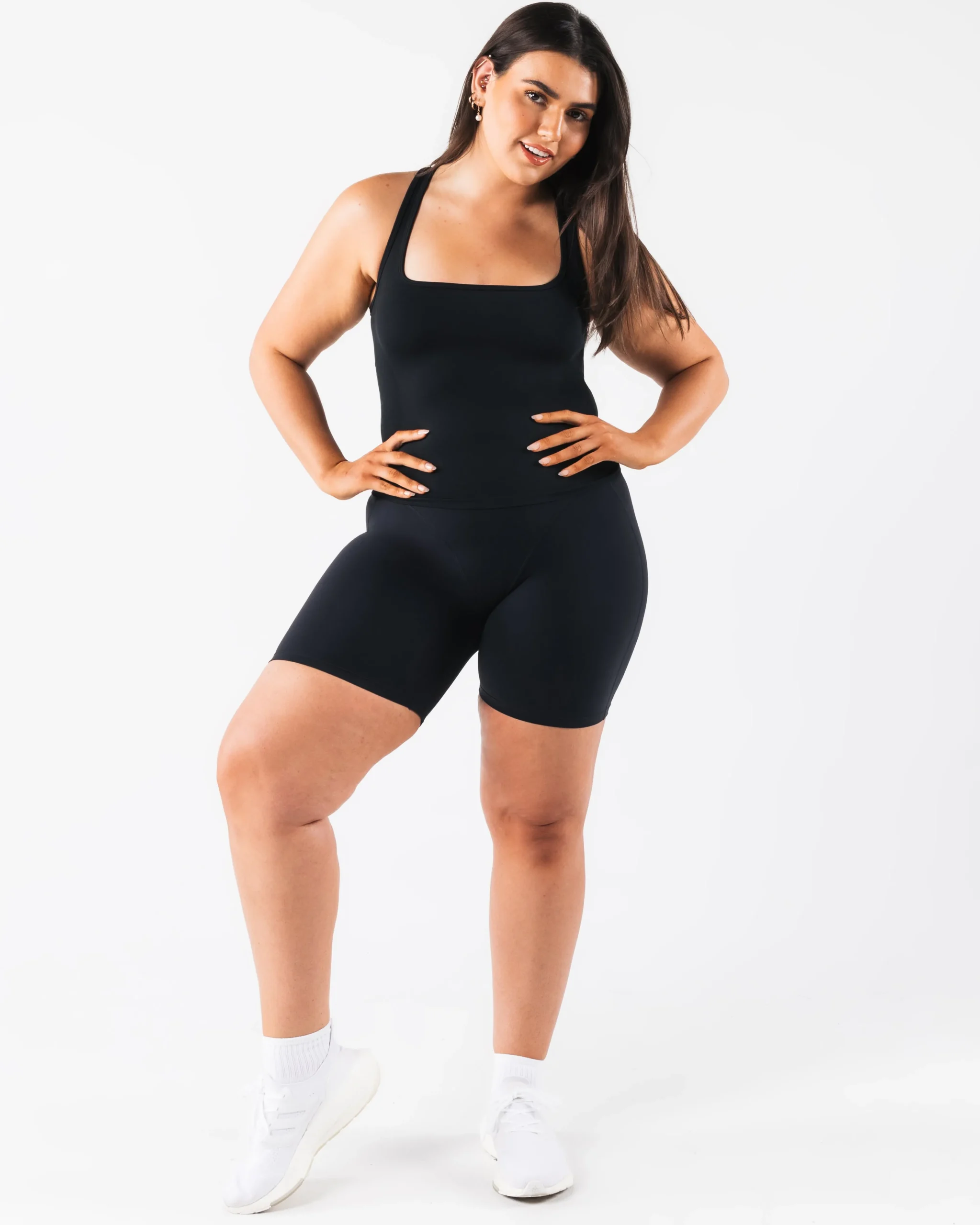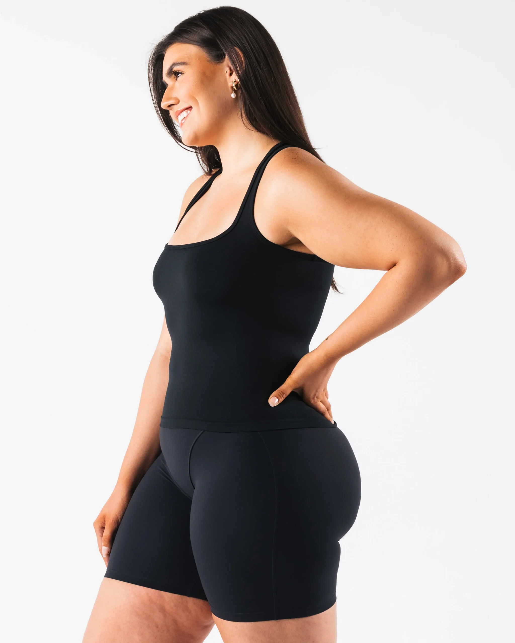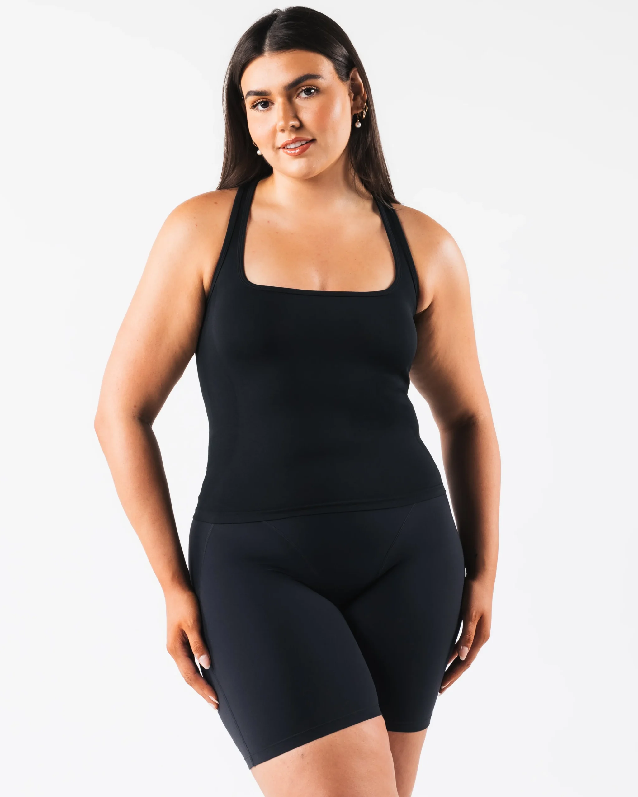 HIGHLIGHTS|Racerback|Square neck|Smooth|High sweat|FIT SUGGESTION|This itemruns true to Alphalete’s standard fit.|Skylar is 5’7”/170.2cm, wearing a size XS with 34.5″/87.6cm bust.|MATERIALS AND WASHING DIRECTIONS|51% Polyamide, 38% Polyester, 11% Elastane|We recommend washing inside-out on a cold setting|Hang to dry|DESCRIPTION|With the same tried and true amplify fabric, the new Ice tank makes for the perfect, versatile layering piece. Compression and breathability allows you to look and feel your best. Our original amplify fabric creates an irresistibly silky, smooth hand-feel while the full-interlocking knit offers the flexibility to move freely.|