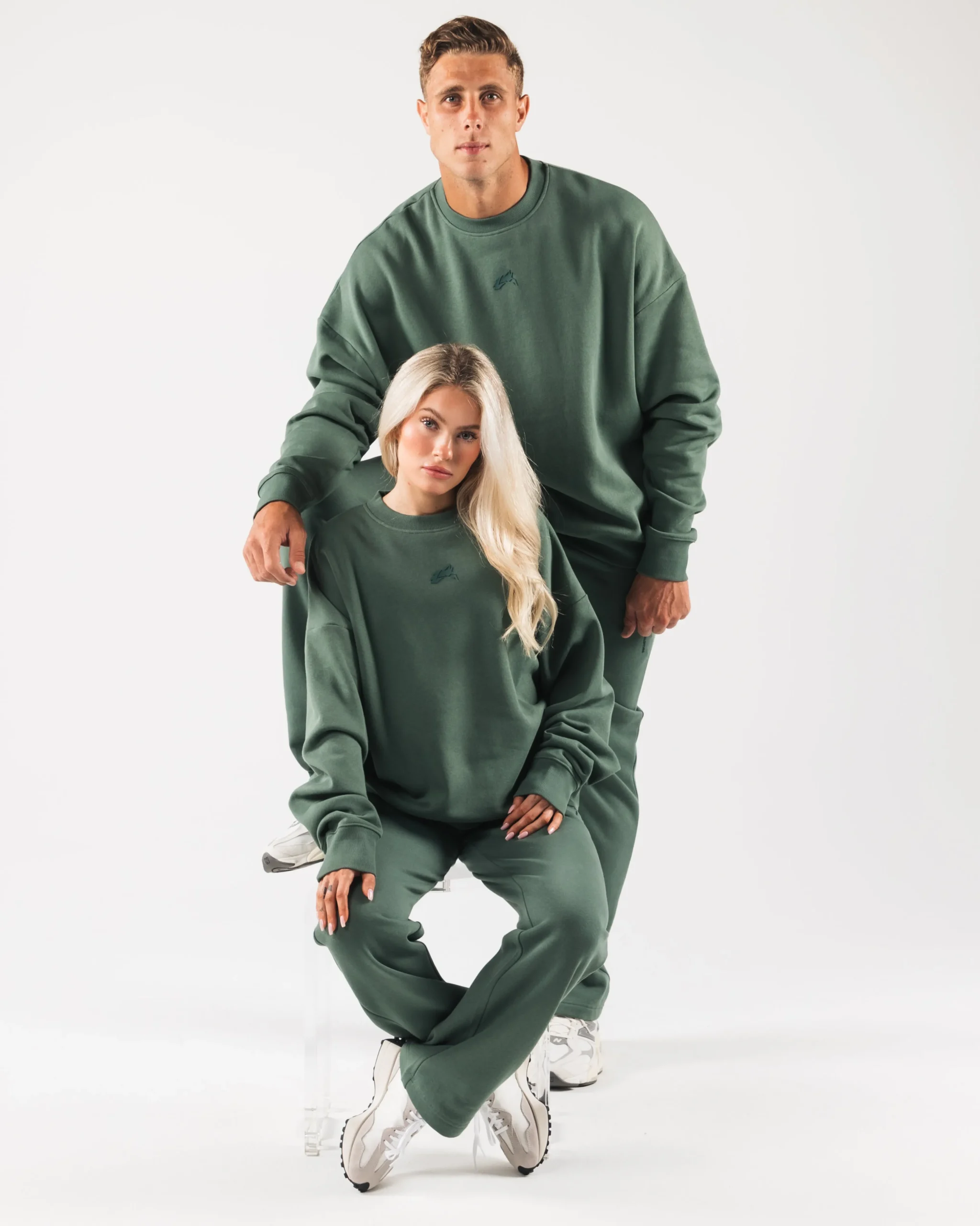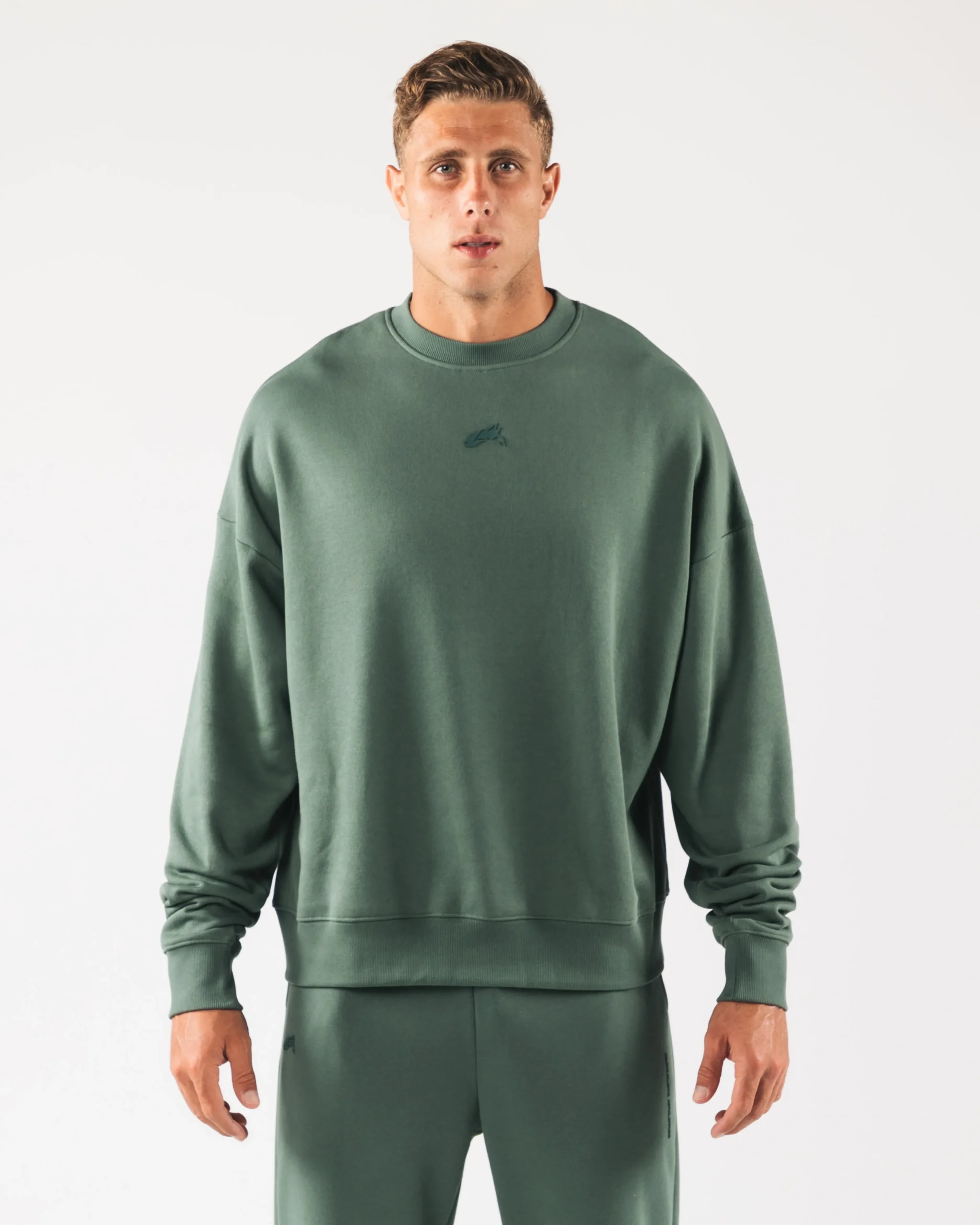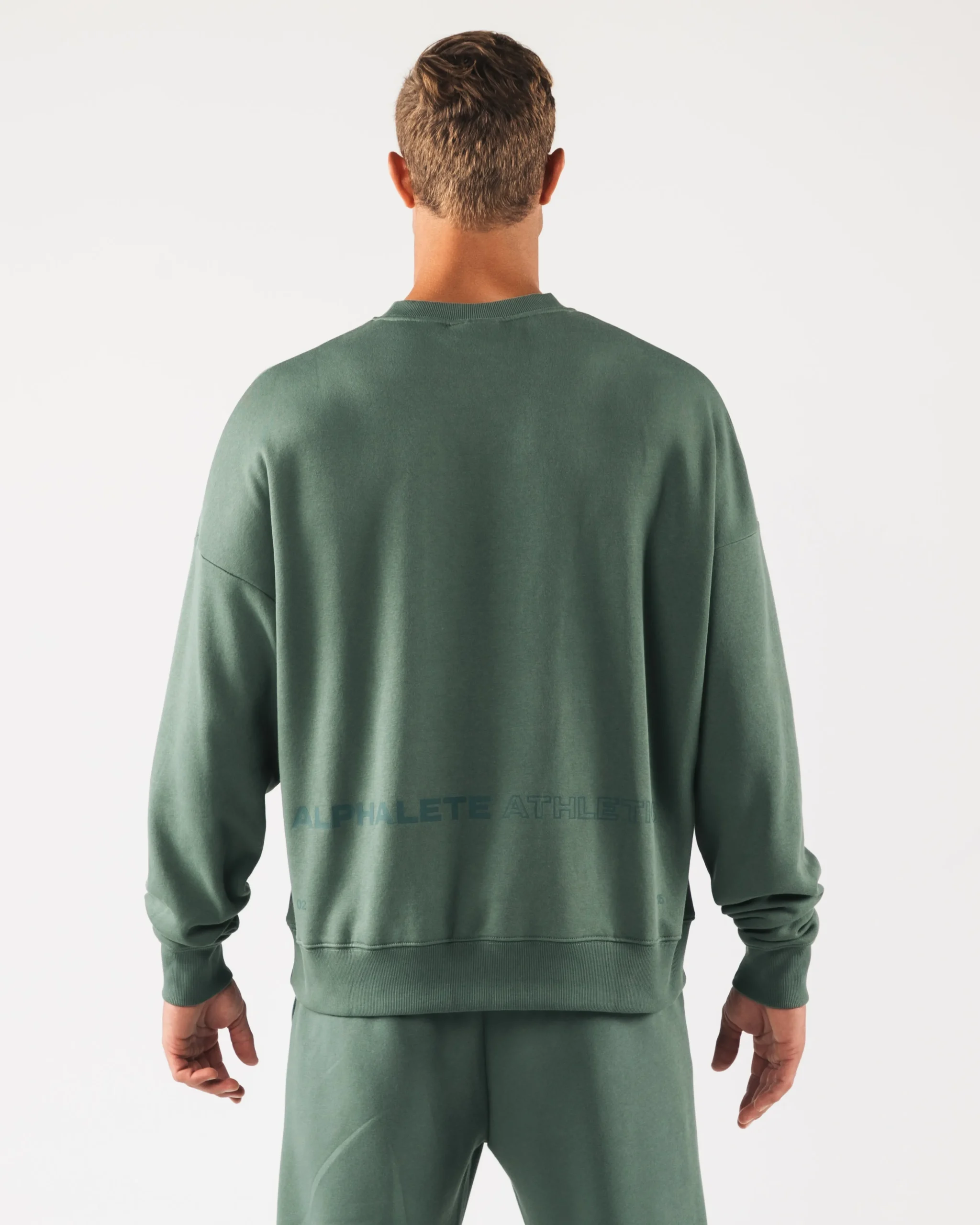 |HIGHLIGHTS|Medium weight, warm brushed fleece on inside|Drop shoulder style|Bonded hemline|Custom internal neck taping|Alphalete Athletics 0215 printed in 3D silicone at bottom back|Wolf head printed in 3D silicone atcenter chest|FIT SUGGESTION|This item runs true to Alphalete’srelaxed fit.|Male model is 6’5”/195.6cm, wearing a size XL with a45”/114cmchest. Female model is 5’2″/157.5cm, wearing a size S with a 34″/86.4cmbust.|MATERIALS AND WASHING DIRECTIONS|55% Cotton, 45% Polyester|We recommend washing inside-out on a cold setting|Hang to dry|Anticipate shrinkage will occur after initial wash|Created using proprietary fabric treatments, our sweatpant material has an amazing, plush hand-feel and unmatched softness.Double-brushed fleece lines the inside providing complete warmth, while the outside has a satisfying and cozy sponge-like feel.Featuring our classic logos in 3D silicone branding. Designed with a modern fit, these pieces are timeless and essential for layering up.