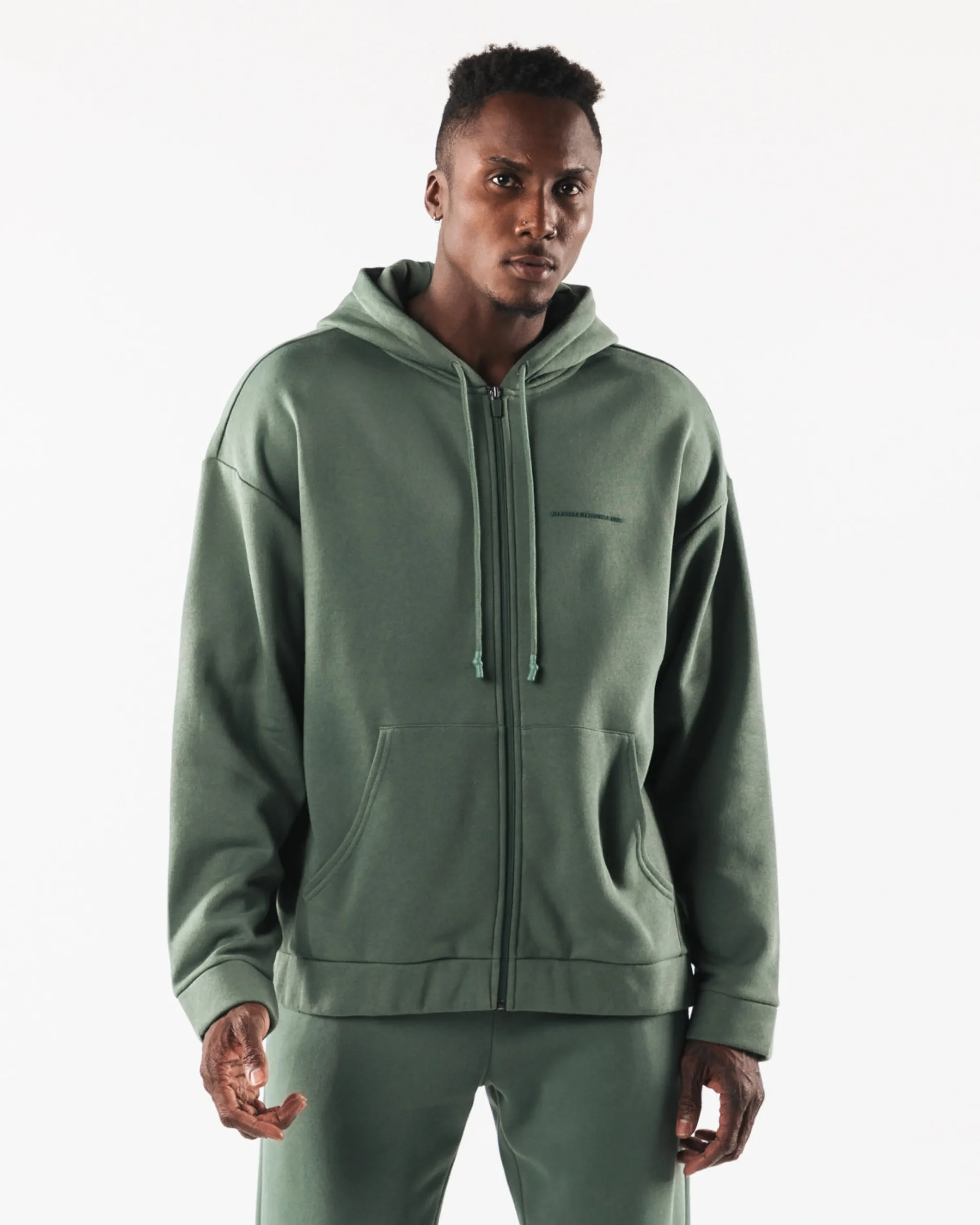 |HIGHLIGHTS|Medium weight, warm brushed fleece on inside|Drop shoulder style|Rubber dipped drawcards|Custom internal neck taping|Alphalete Athleticsprinted in 3D silicone at front|Dual pockets|FIT SUGGESTION|This item runs true to Alphalete’srelaxed fit.|Model is 6’5”/195.6cm, wearing a size L with a41”/104.1cmchest.|MATERIALS AND WASHING DIRECTIONS|55% Cotton, 45% Polyester|We recommend washing inside-out on a cold setting|Hang to dry|Anticipate shrinkage will occur after initial wash|Created using proprietary fabric treatments, our sweatpant material has an amazing, plush hand-feel and unmatched softness.Double-brushed fleece lines the inside providing complete warmth, while the outside has a satisfying and cozy sponge-like feel.Featuring our classic logos in 3D silicone branding. Designed with a modern fit, these pieces are timeless and essential for layering up.
