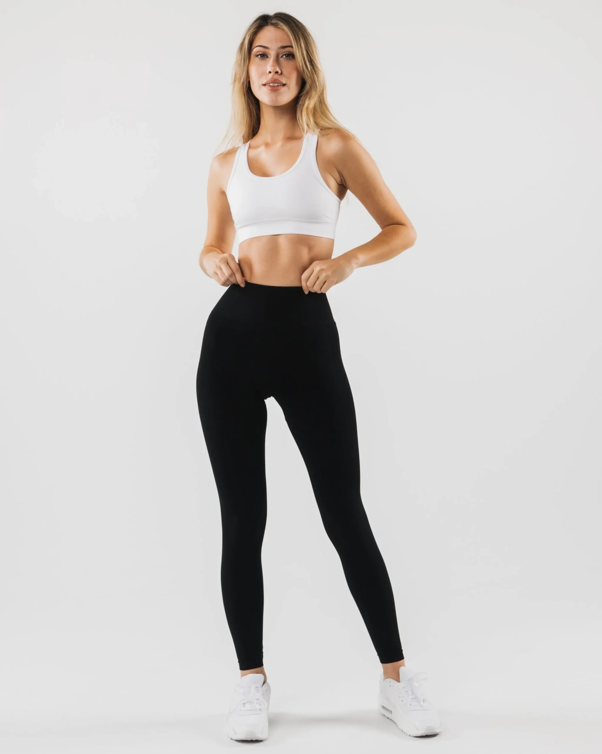 |HIGHLIGHTS|Custom fabric blend made from our fine Italian yarn|Top finish treatments to achieve buttery softness|Unique filament count – allows extreme stretch and wicking capabilities|Scoop neckline|Medium support|ForeverKnit logo on waistband|FIT SUGGESTION|This item runs true to Alphalete’s standard seamless fit.|If you are between sizes, we recommend sizing up.|Model is 5’8”/172cm, wearing a size XS with a 31”/78cm bust.|MATERIALS AND WASHING DIRECTIONS|51% Polyamide, 38% Polyester, 11% Elastane|We recommend washing inside-out on a cold setting|Hang to dry|DESCRIPTION|Custom sourced Italian yarn fibers are blended together to create an irresistibly silky, smooth hand-feel. Our exclusive full-interlock knit construction forms a more dense seamless fabric that maintains breathability. Increased elasticity provides unmatched compression, shape retention, and flexibility made to move in sync with you. Our physique-enhancing seam work is structurally reinforced to provide support and durability. Amplify tops offer a form-fitting look while amplify bottoms are designed to accentuate curves in all of the right places.