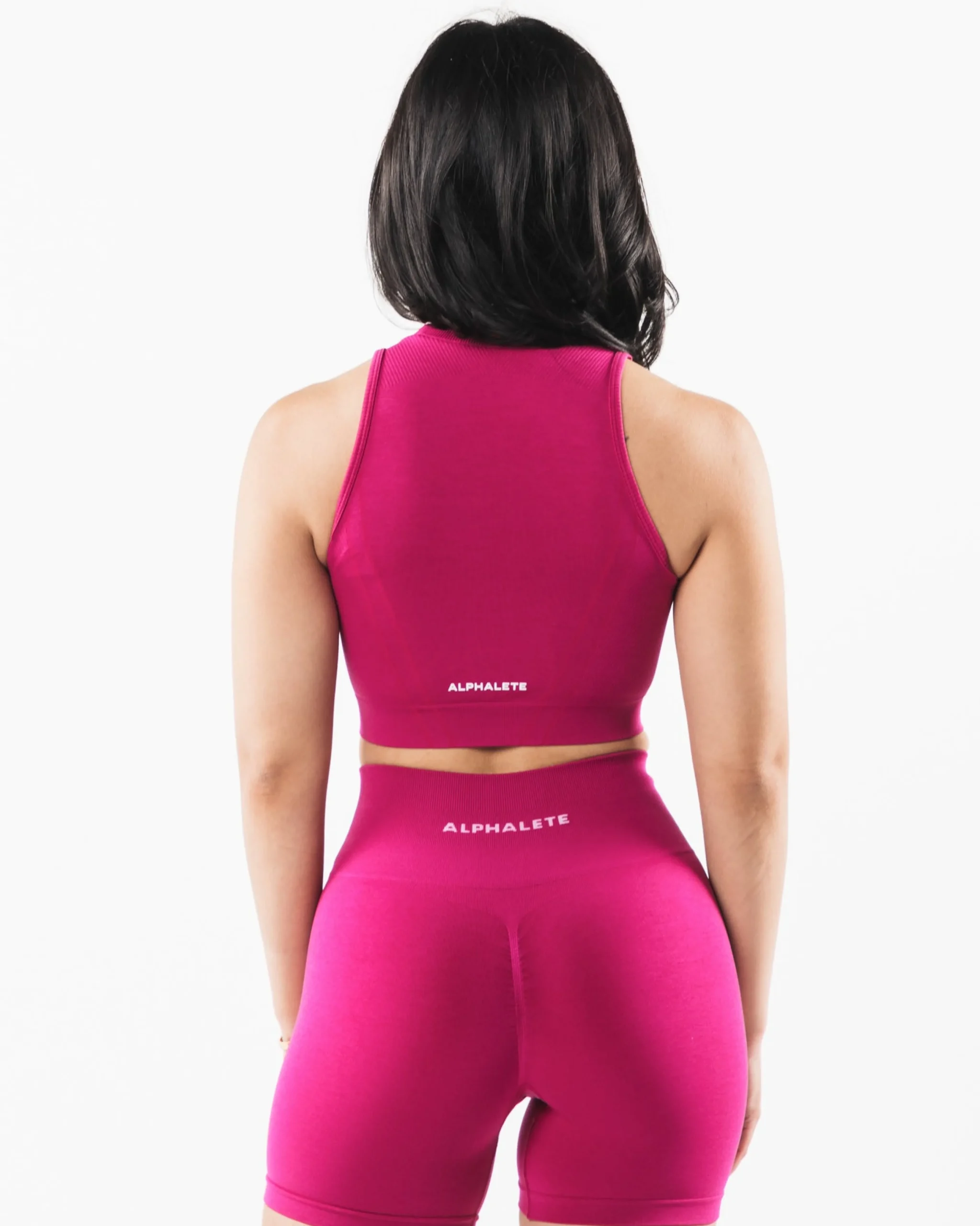 |HIGHLIGHTS|Crew neckline|Low impact|Long line length tank|Wide back style|Reinforced binding arm finishing|Alphalete Core logo printed on center lower back|FIT SUGGESTION|This item runs true to Alphalete’s standard seamless fit.|If you are between sizes, we recommend sizing up.|Model is 5’3”/160cm, wearing a size S with a 33”/84cm bust.|MATERIALS AND WASHING DIRECTIONS|51% Polyamide, 38% Polyester, 11% Elastane|We recommend washing inside-out on a cold setting|Hang to dry|DESCRIPTION|Custom sourced Italian yarn fibers are blended together to create an irresistibly silky, smooth hand-feel. Our exclusive full-interlock knit construction forms a more dense seamless fabric that maintains breathability. Increased elasticity provides unmatched compression, shape retention, and flexibility made to move in sync with you. Our physique-enhancing seam work is structurally reinforced to provide support and durability. Amplify tops offer a form-fitting look while amplify bottoms are designed to accentuate curves in all of the right places.