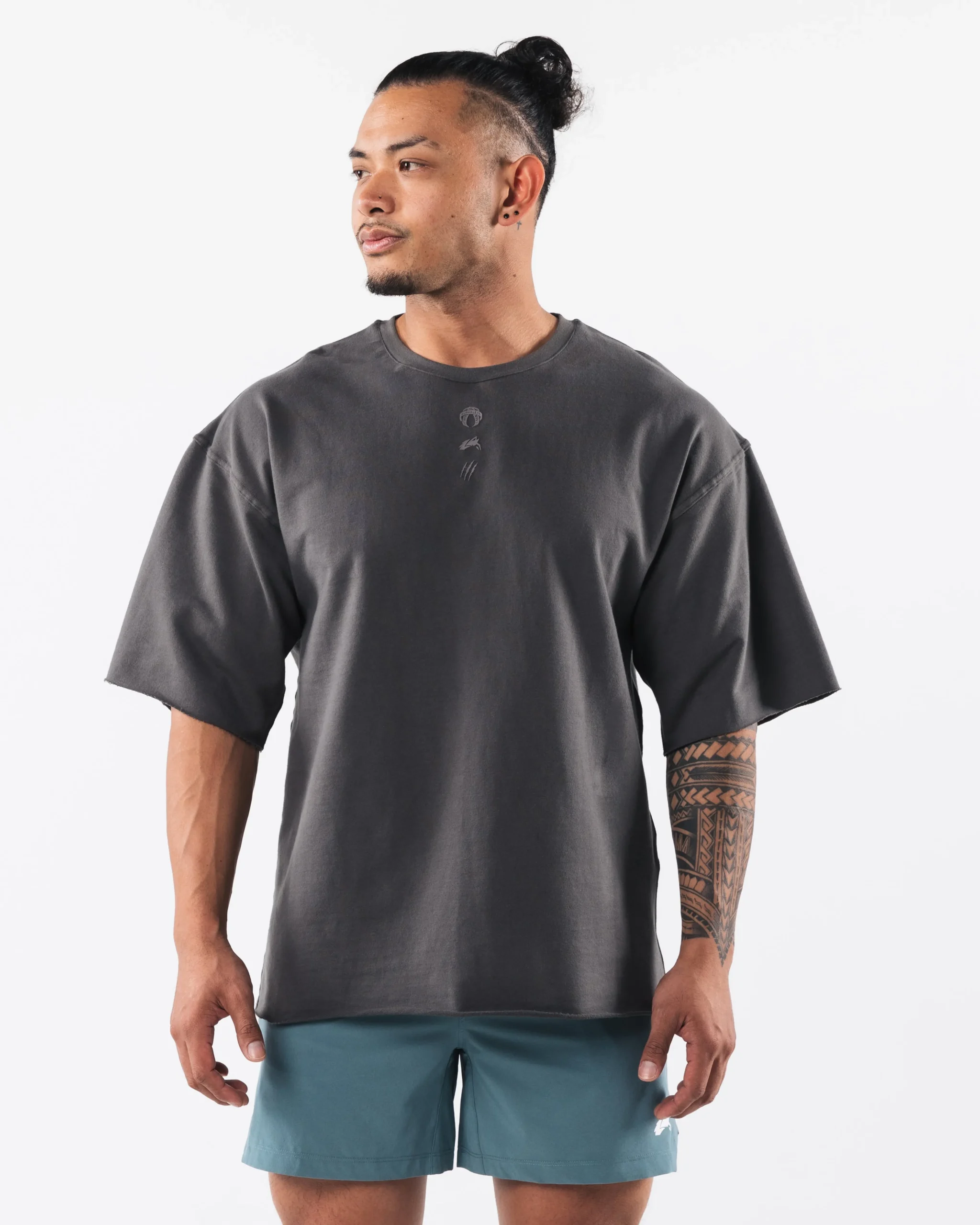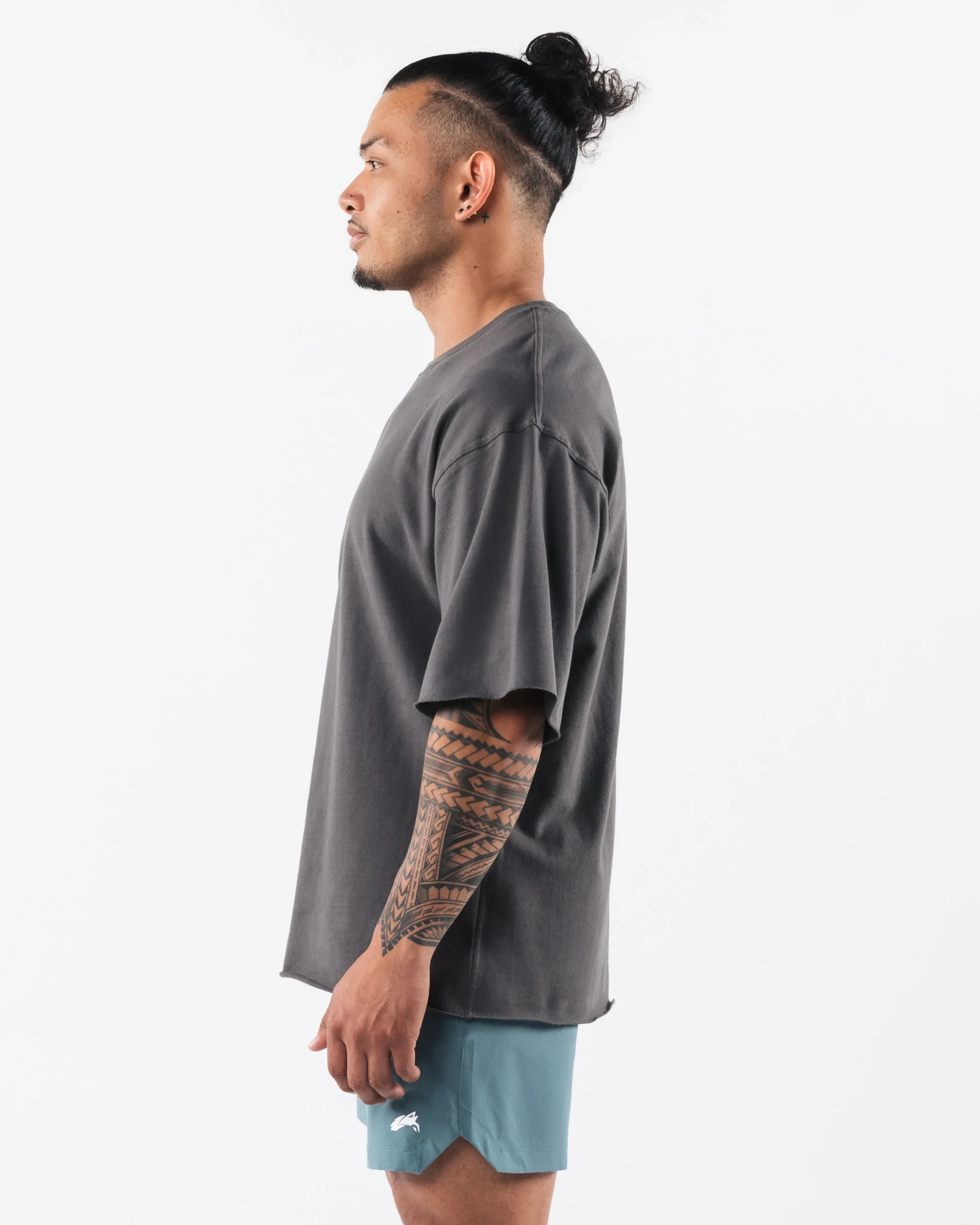 |HIGHLIGHTS|Raw edge finish at hem and sleeves|Dropped shoulders|Rib knit collar|Rubberized logo appliqué at front chest|FIT SUGGESTION|This item runs true to Alphalete’soversizedfit.|If you are between sizes, we recommend sizing up.|Model is 5’7”/170.2cm, wearing a size M with a44”/112cmchest.|MATERIALS AND WASHING DIRECTIONS|100% Cotton|Comfort|Durability|Wash inside out with like colors|Cool iron, Iron inside out|Hang to dry|Do not bleach|Our three pillar tee is made from a cotton polyester blend fleece to contribute durability and softness. Our Terry Tee offers a saw raw hem sleeve finishing, dropped shoulders to provide you an elevated pump cover.