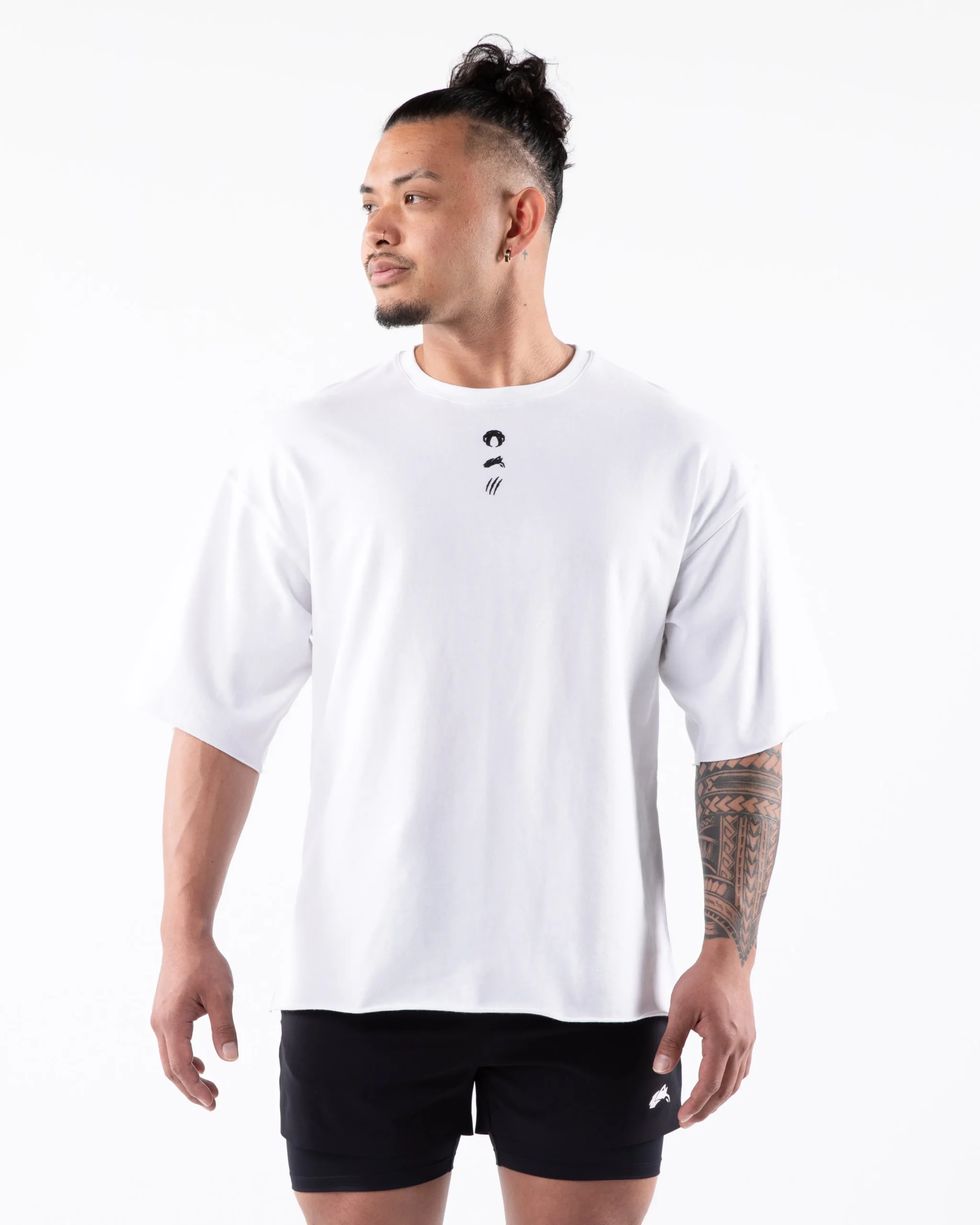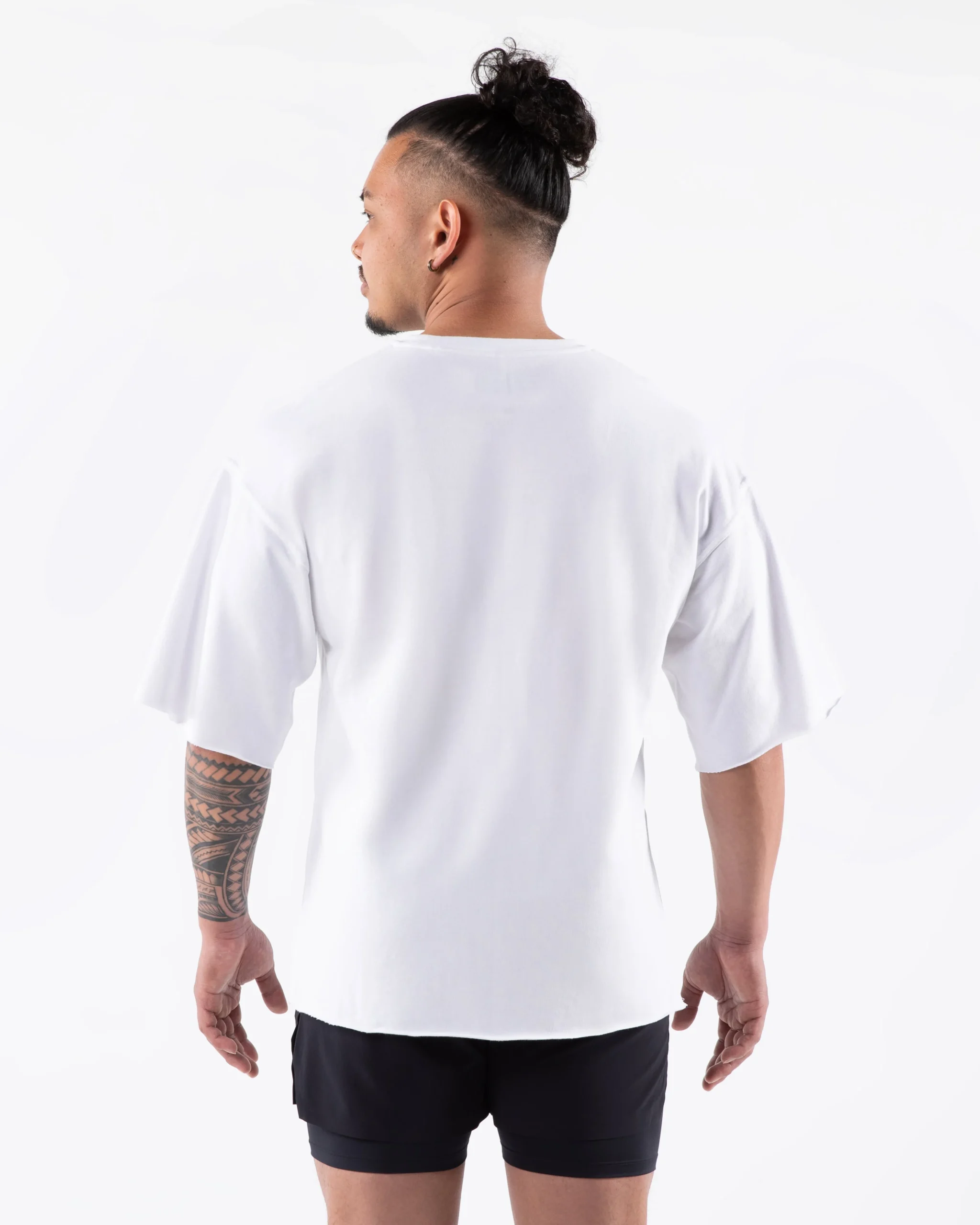 HIGHLIGHTS|Raw edge finish at hem and sleeves|Dropped shoulders|Rib knit collar|Rubberized logo appliqué at front chest|FIT SUGGESTION|This item runs true to Alphalete’soversizedfit.|Model is 5’7”/170.2cm, wearing a size M with a44”/112cmchest.|MATERIALS AND WASHING DIRECTIONS|100% Cotton|Comfort|Durability|Wash inside out with like colors|Cool iron, Iron inside out|Hang to dry|Do not bleach|Our three pillar tee is made from a cotton polyester blend fleece to contribute durability and softness. Our Terry Tee offers a saw raw hem sleeve finishing, dropped shoulders to provide you an elevated pump cover.