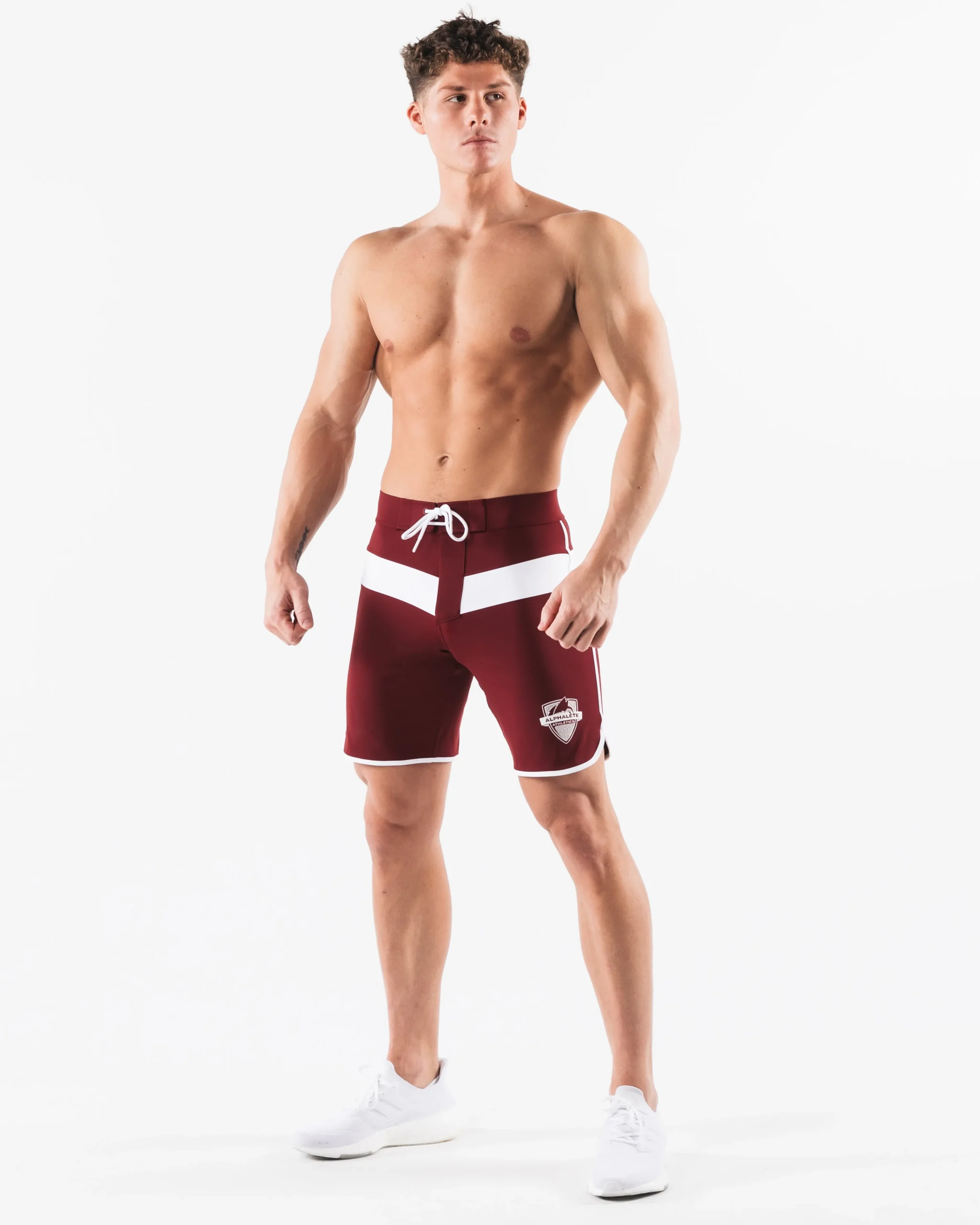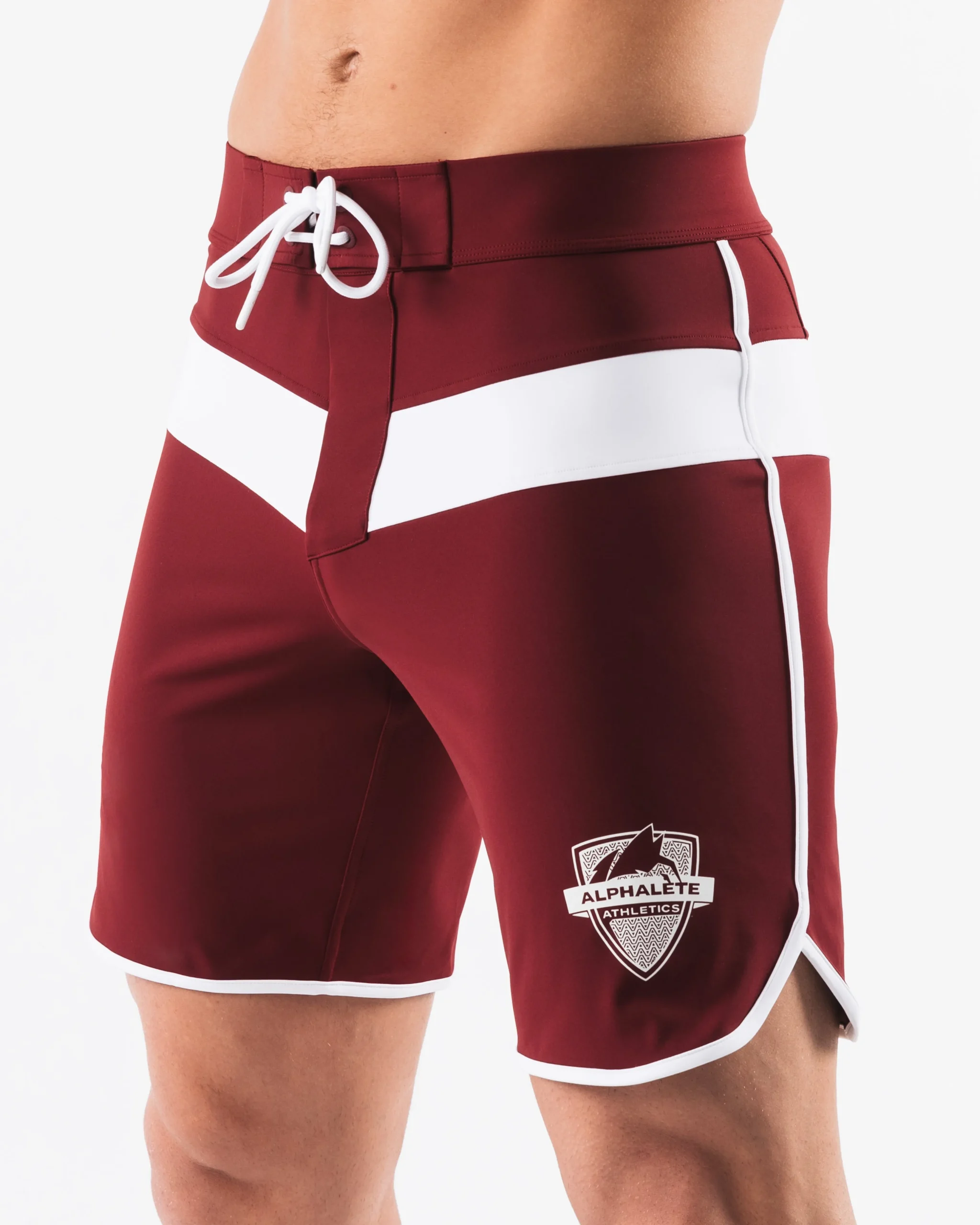 HIGHLIGHTS|Unlined boardshort|9” inseam|Reflective branding at leg opening and back waistband|Elastic waistband with adjustable self-tie drawcords|Color-blocking panelling|Water resistant fabric|FIT SUGGESTION|This item runs true to Alphalete’s standard sizing.|Fit is based off of waist size in inches.|If you are between sizes, we recommend sizing up for a relaxed fit.|Eric is 6’2”/188cm, wearing a size 32.|MATERIALS AND WASHING DIRECTIONS|67% Nylon, 23% spandex|Due to the high saturation of colors, initial fabric bleed may occur|We recommend washing inside-out on a cold setting|Hang to dry|DESCRIPTION|Our Titan Short is a testament to strength and resilience. Just like the mighty Titans of ancient mythology,these shorts are designed to empowerand inspire. Crafted with durability andcompetition in mind.|