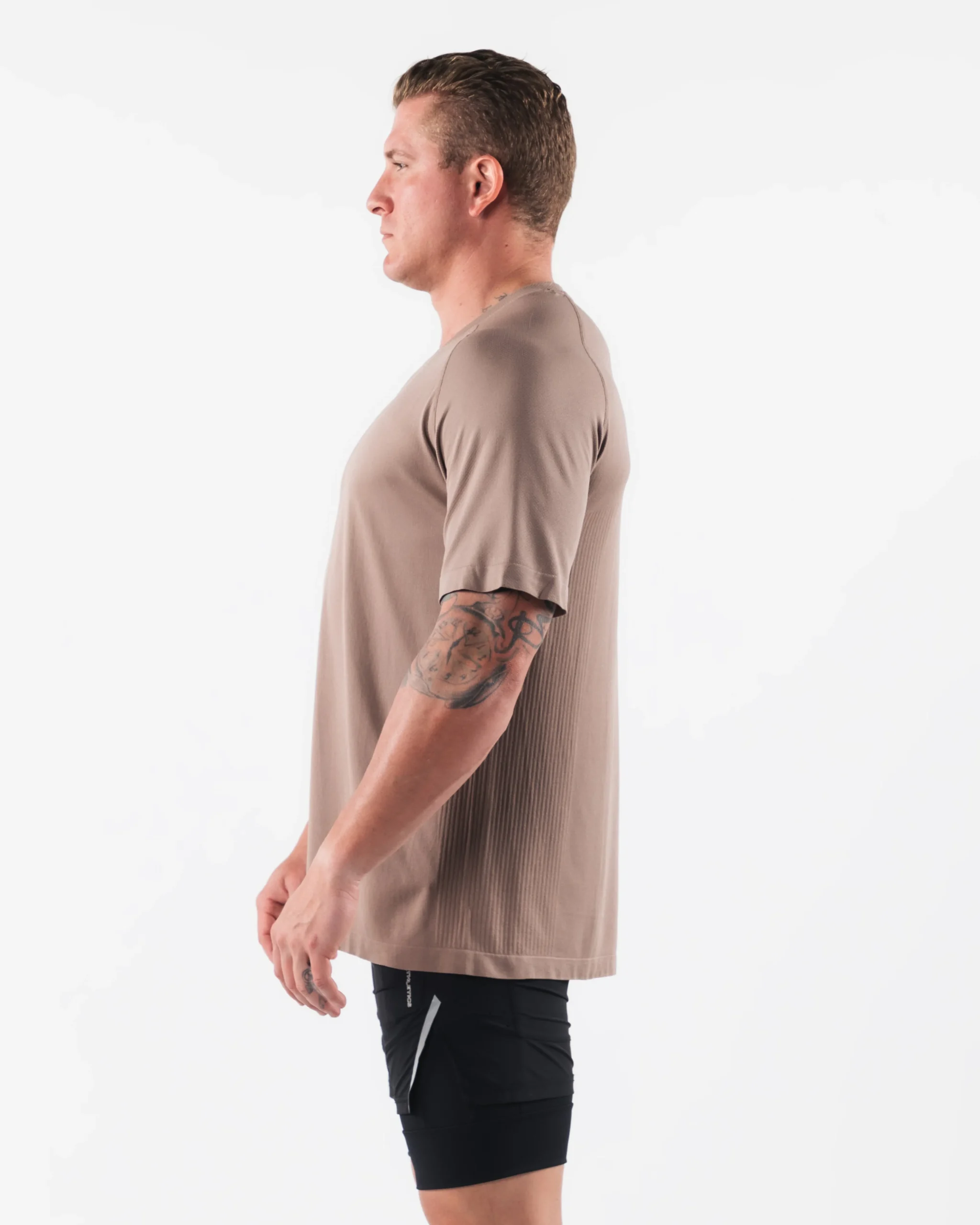 |HIGHLIGHTS|Relaxedfit|Sweat-wicking technology|3-D silicone branding|Air tech knit|Seamless construction|FIT SUGGESTION|This item runs true to Alphalete’sstandardfit.|Male model is 6’1”/185.4cm, wearing a size XL with a44”/111.7cmchest.|MATERIALS AND WASHING DIRECTIONS|58%Polyester, 38% Recycled Nylon, 4% Spandex|We recommend washing inside-out on a cold setting|Hang to dry|Introducing Air Tech, our new performance items. Cool to the touch, lightweight, and breathable, our new air tech knit fabric is made to withstand any activity while offering ultimate comfort. Our Performance items offer relaxed fit as well as sweat-wicking properties to allow quick drying. The cooling effect allows for the body heat to be repelled away instantly.